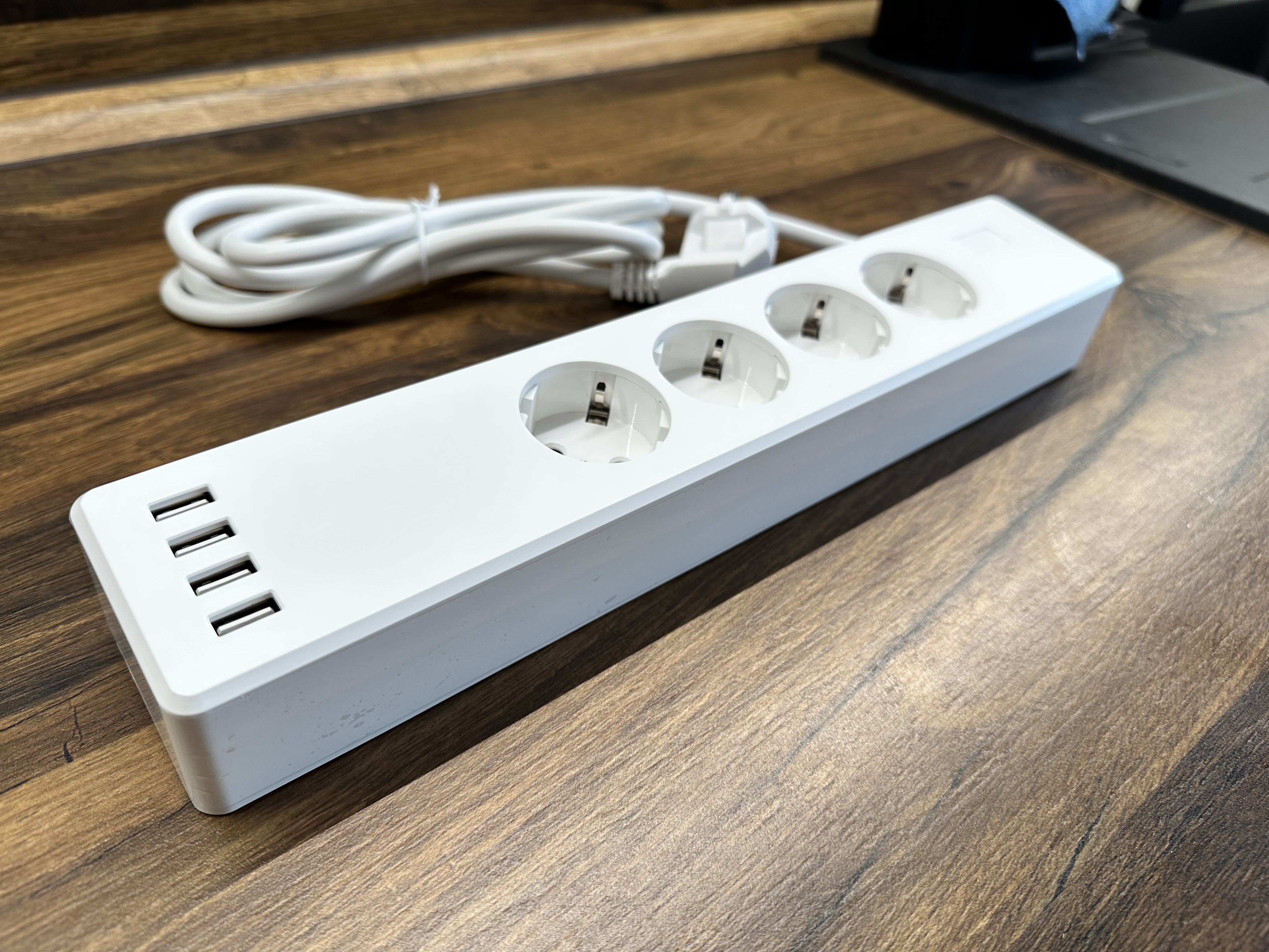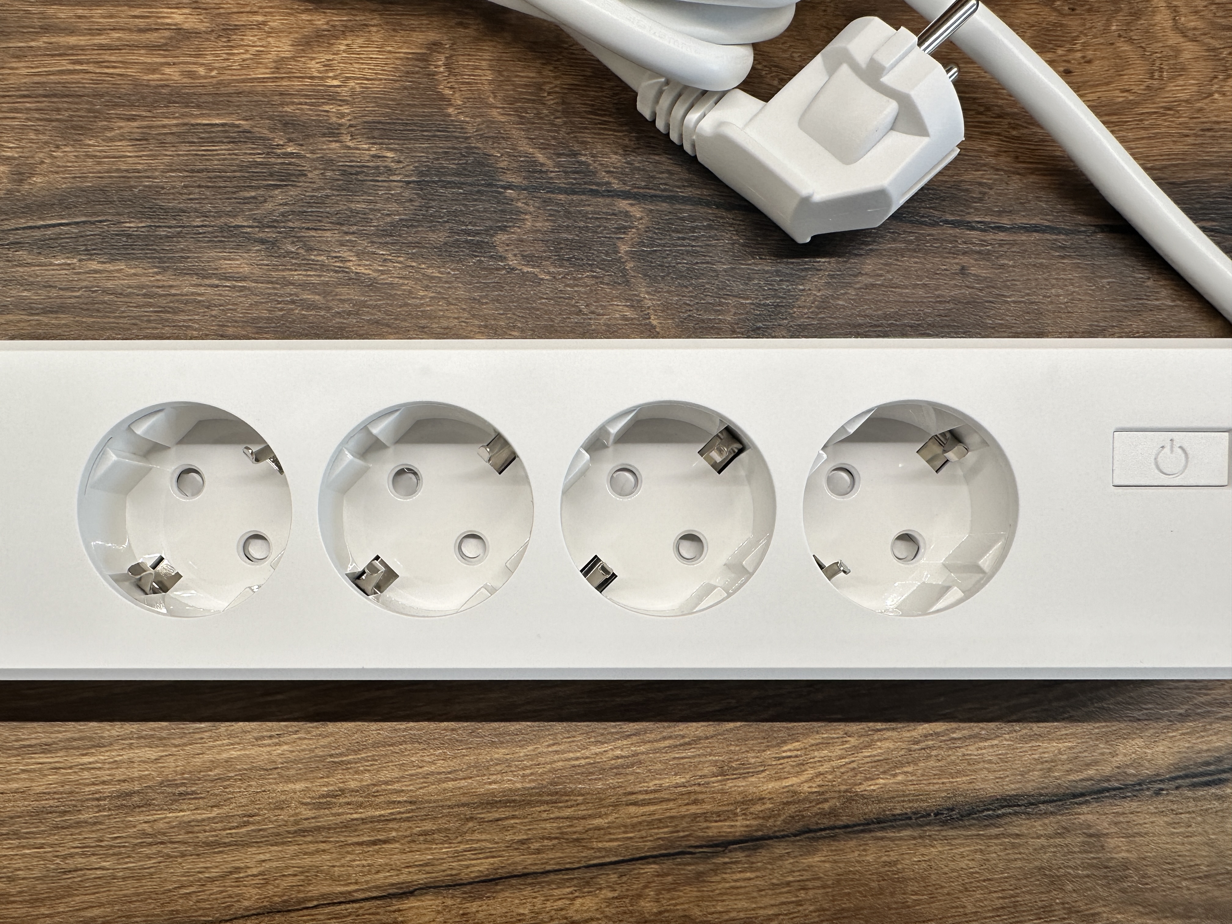 Na první pohled se prodlužovačka Meross MSS425FHK nevymyká standardu. Jedná se totiž o klasickou bílou „krabičku, s relativně dlouhým napájecím kabelem (konkrétně o délce 1,8 metru), na které jsou k dispozici čtyři klasické AC zdířky a dále pak čtyři USB-A porty. Prodlužovačka jako taková pak lze ovládat pomocí vypínacího/zapínacího tlačítka na horní straně s tím, že to aktivuje či naopak deaktivuje všechny zdířky. Fajn je, že na zadní straně prodlužovačky naleznete jednak protiskluzové nožky, díky čemuž tak drží na zemi bez jakéhokoliv smýkání, a jednak dírky pro případ, že byste si chtěli produkt pověsit na zeď a používat jej de facto jako klasickou zásuvkovou skříň. Pokud vás pak zajímá, co je zásuvka schopná „utáhnout, je to zátěž až do 2400 W, což je pro běžné domácí využití naprosto dostačující.