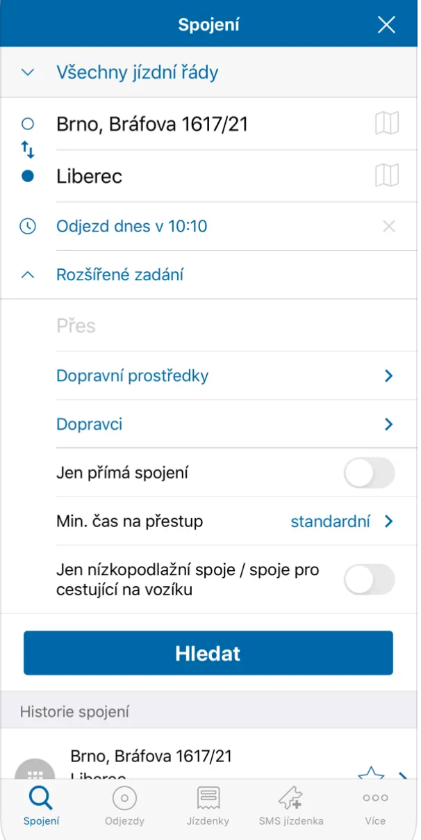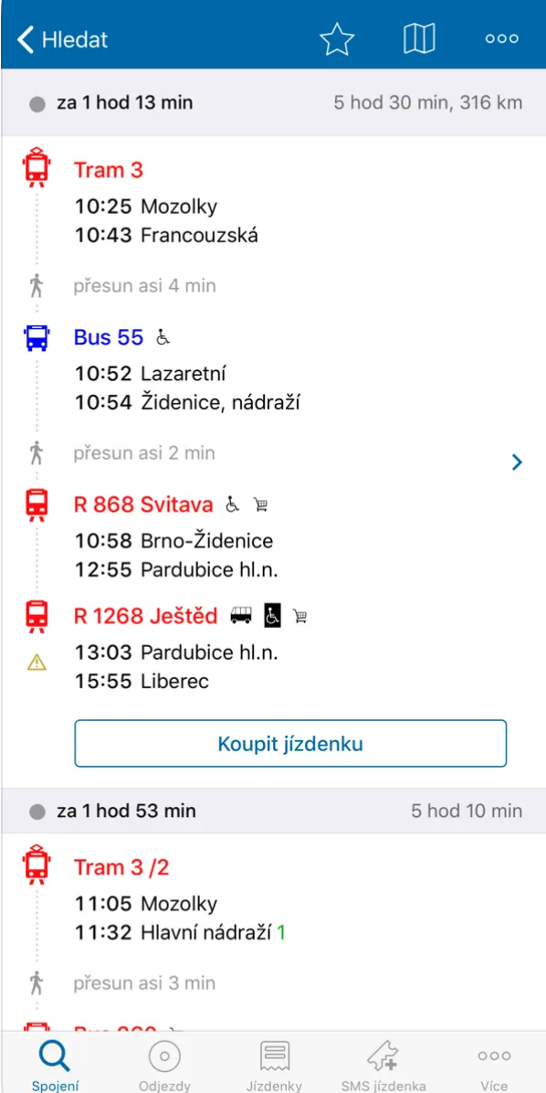 Další oblíbenou aplikací s jízdními řády nejen pro vlaky je IDOS. Můžete zde vyhledávat jízdní řády pro vlaky, autobusy a MHD, vyhledávat spojení s možností preferencí přímých spojů, ale také zakupovat SMS jízdenky a spoustu dalšího.