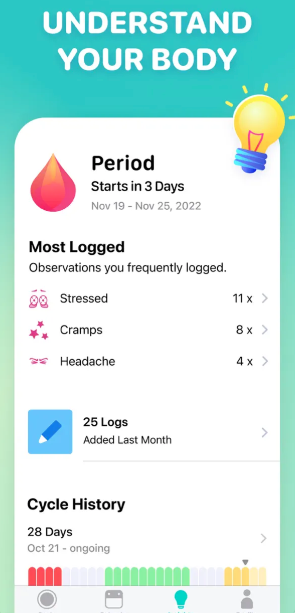 Pokud z jakéhokoliv důvodu nechcete používat nativní Sledování cyklu od Applu, můžete vyzkoušet aplikaci Cycles: Period & Cycle Tracker. Nabízí možnost sledování cyklu se vším, co k tomu patří, a umí vám na základě sledovaných údajů poskytnout informace o ovulaci a dalších fázích cyklu. Vybrané informace můžete zobrazit v podobě widgetů na zamčené obrazovce.