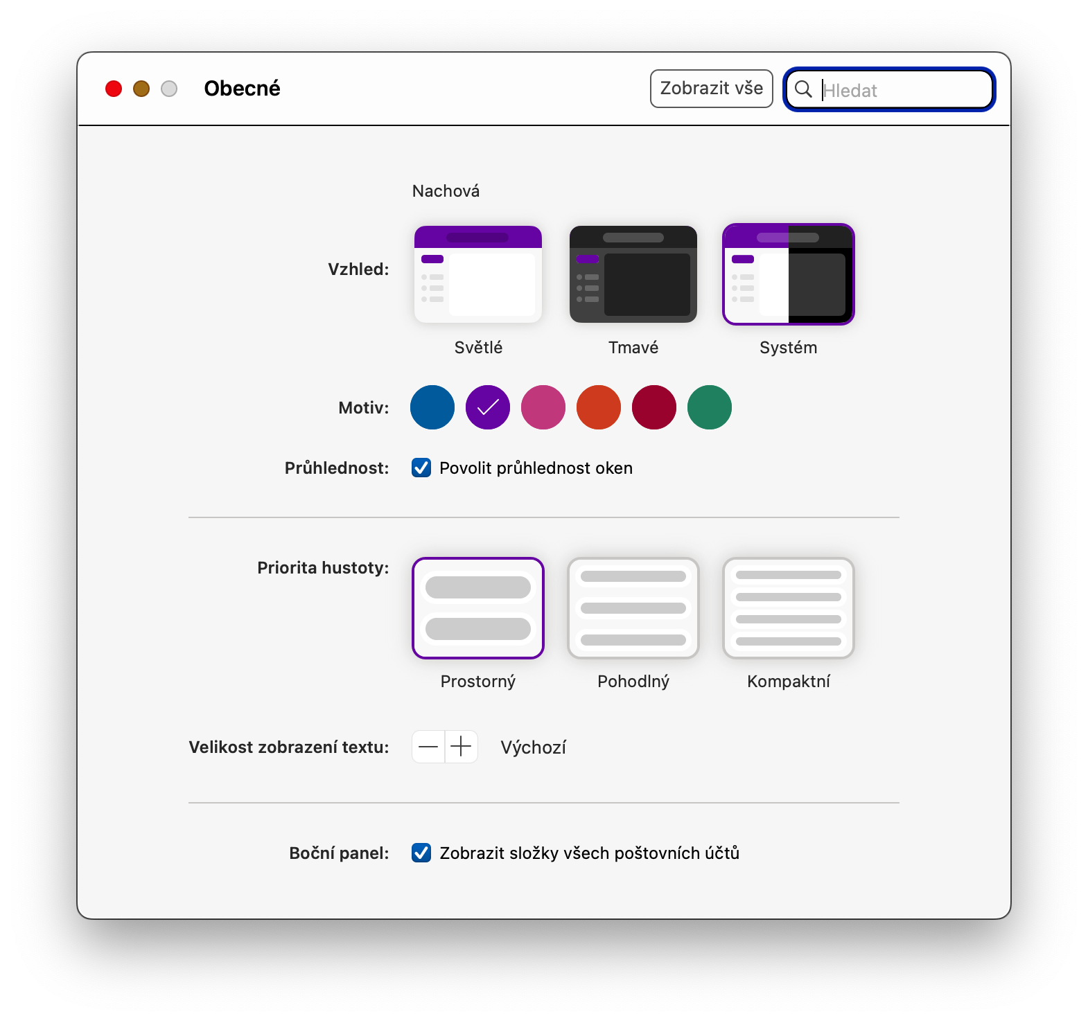 V Outlooku na Macu si můžete také snadno a rychle změnit motiv, případně nastavit trvale světlý, trvale tmavý, nebo automaticky se střídající režim. Pro nastavení motivu klikněte na liště v horní části obrazovky Macu na Outlook -> Nastavení. Vyberte Obecné a nastavte požadovaný vzhled, hustotu zobrazení a další detaily.