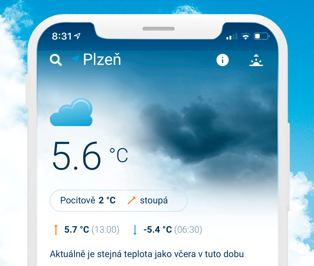 Údaje o aktuální teplotě aplikace In-počasí aktualizuje několikrát za hodinu a udává jen dokonce na desetinu stupně přesně, pokud jste v blízkosti meteorologické stanice.Aplikace navíc s daty o teplotě dále pracuje – udává denní maxima, minima, pocitovou teplotu či srovnání údajů se včerejším dnem (což přijde vhod například při výběru oblečení).