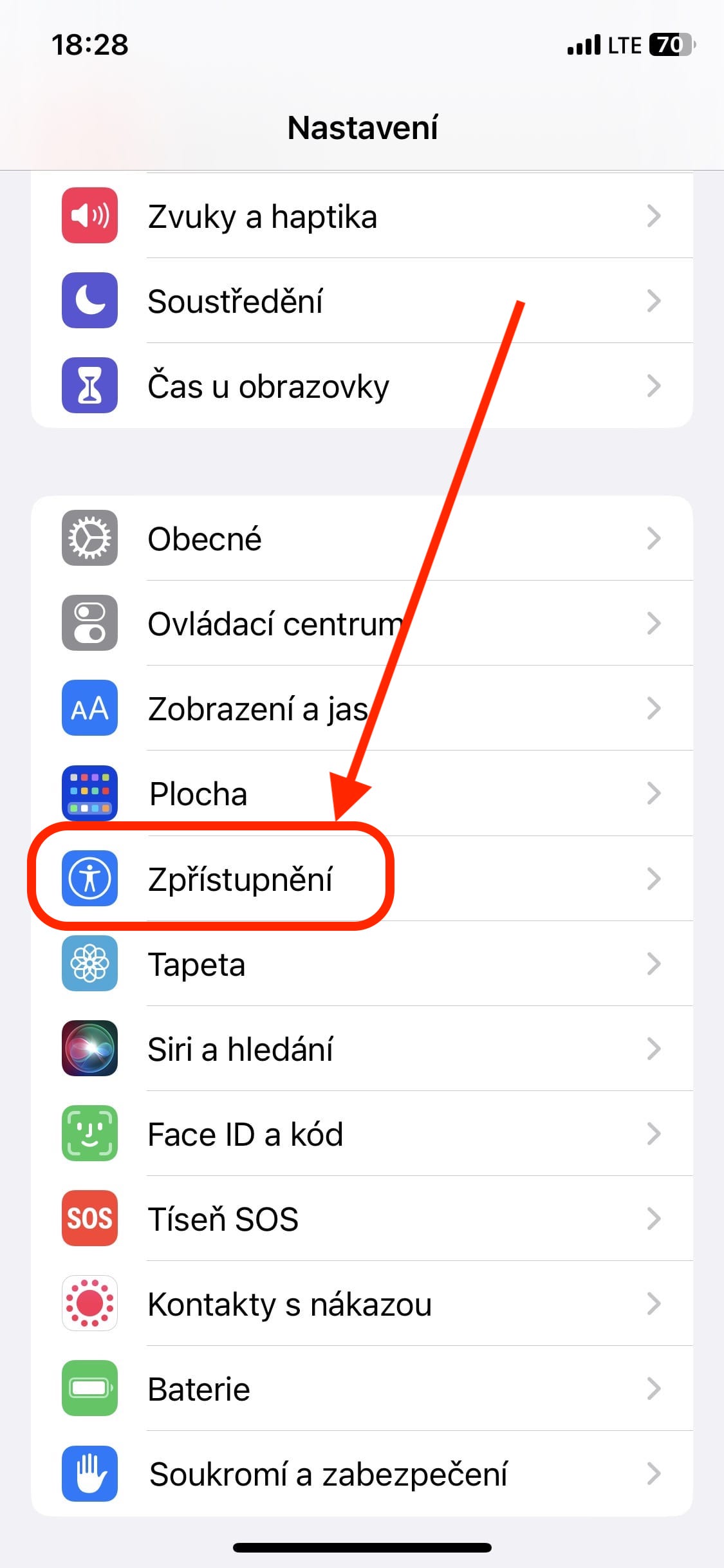 • Posuňte se o něco níž a přejděte do kategorie Zpřístupnění