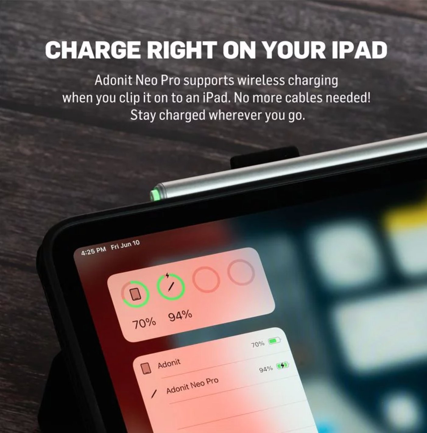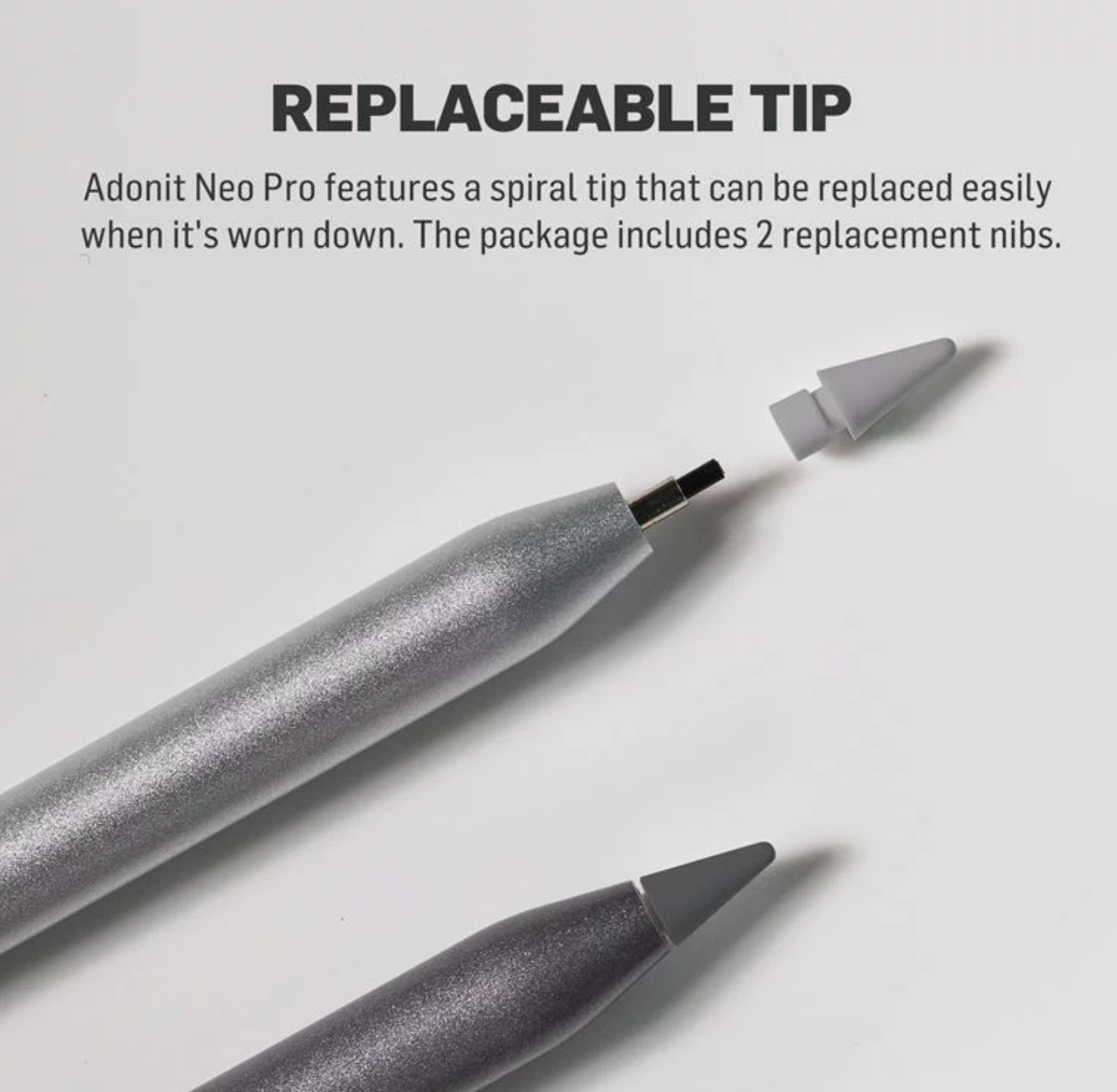 Adonit Neo Pro Silver je dobře vypadající aktivní stylus pro tablet. Na jedno nabití nabízí výdrž po dobu až 9 hodin, disponuje snadno vyměnitelným hrotem, a jeho váha činí 12 gramů. Samozřejmostí je kompatibilita s novějšími iPady a magnetické nabíjení.