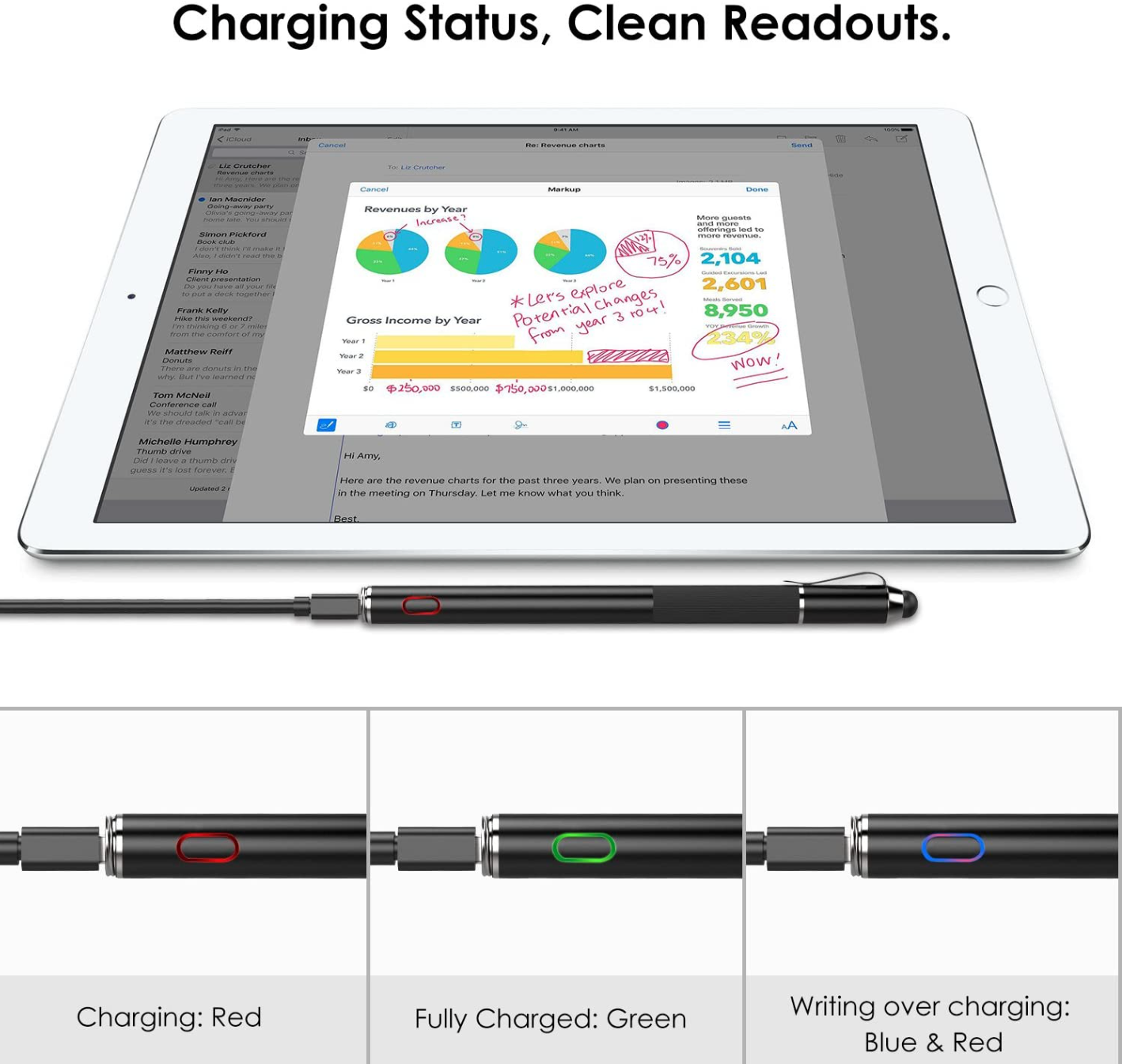 Moku Stylus je dostupná, ale kvalitní alternativa pro ty, kteří chtějí ušetřit peníze a zároveň si zachovat velkou všestrannost. Na jedno nabití vydrží v provozu až 10 hodin, v pohotovostním režimu až jeden rok. Nabíjení probíhá prostřednictvím kabelu USB-C, takže v případě potřeby můžete stylus dobít i pomocí nabíječky iPadu.