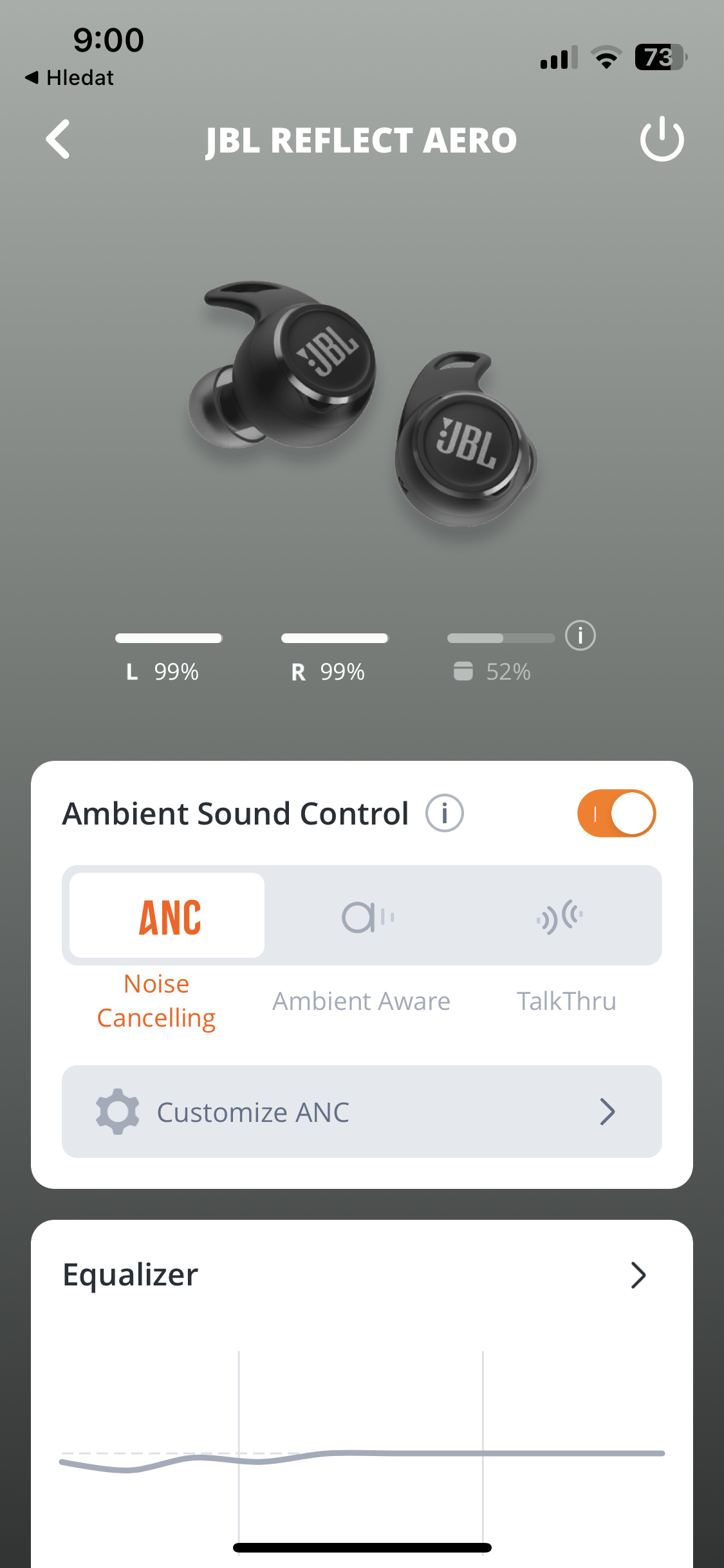 Pochopitelně nedůležitějším prvkem sluchátek je to, jak hrají a v tomto ohledu vás model Reflect Aero rozhodně nezklame. Defaultně nastavený zvukový profil je poměrně vyvážený, s drobným akcentováním basových frekvencí, ovšem rozhodně nejde o nic rušivého. Sluchátka nabízí dobrou čitelnost a prostorové podání zvuku, vlivem jejich konstrukce také skvěle izolují okolí a dovolí vám se do zvuku ponořit. To vše jde ruku v ruce se solidně fungujícím režimem ANC a především pak možností personalizace ekvalizéru v aplikaci JBL Headphones. V něm je možné si zvukový profi sluchátek zcela přenastavit dle vlastních preferencí a dle toho, co zrovna posloucháte za žánr či typ obsahu. Z hlediska zvukové kvality jde tedy v rámci této cenové hladiny rozhodně o nadprůměr a zvukem sluchátka opravdu neurazí, ba naopak. Doprovodné funkce typu Ambient Aware a TalkThru jsou odladěné o poznání lépe, než u jiných modelů značky. Ani zde tedy není příliš prostoru pro kritiku, byť využitelnost režimu TalkThru může být pro někoho diskutabilní.