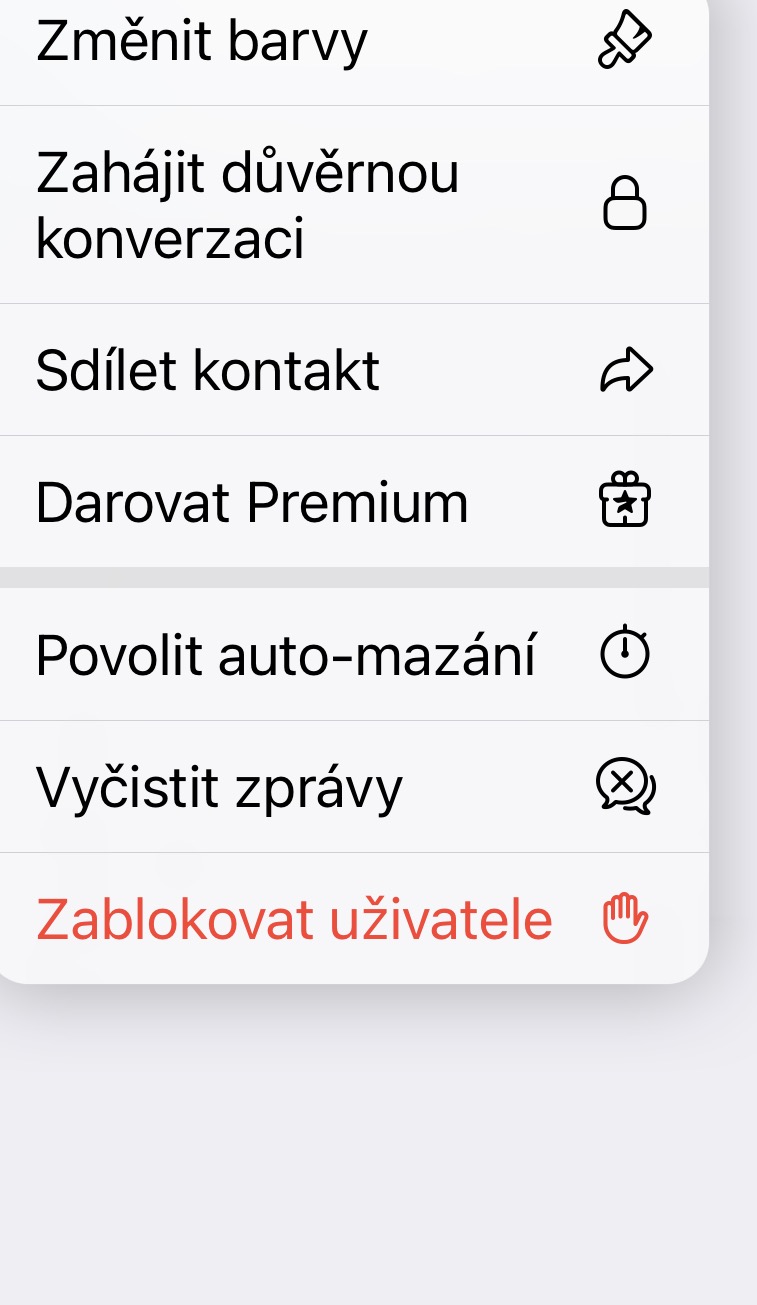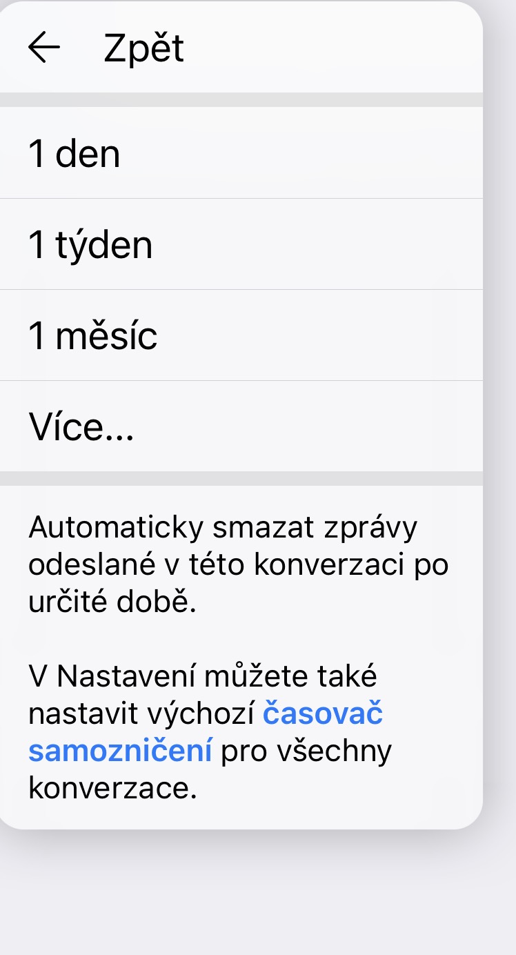 U vybraných konverzací na Telegramu můžete také nastavit takzvané automatické mazání. Nejprve vyberte příslušnou konverzaci a poté klepněte na ikonku profilu vpravo nahoře. Klepněte na tři tečky, v menu zvolte Povolit auto-mazání a nastavte požadovaný časový limit.
