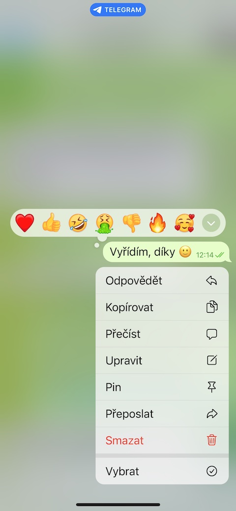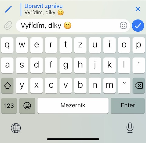 Odeslané zprávy v Telegramu na iPhonu můžete samozřejmě také zpětně upravovat, přičemž druhá strana bude samozřejmě mít o úpravách přehled. Pro upravení odeslané zprávy dlouze stiskněte příslušnou zprávu a klepněte na Upravit. Proveďte potřebné úpravy a potvrďte kliknutím na modré tlačítko.
