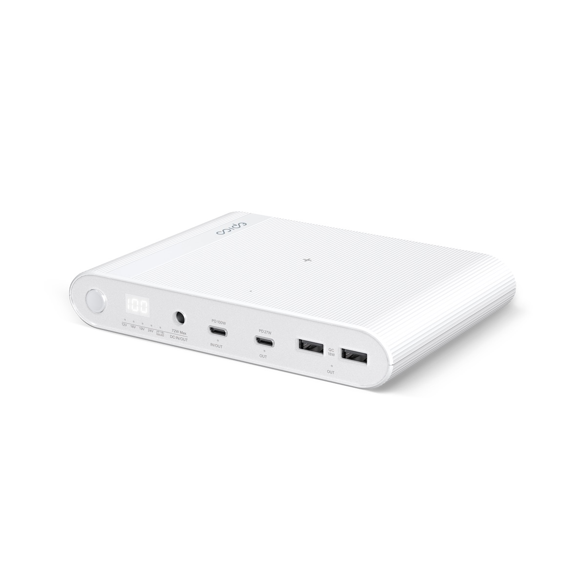 K tomu pak slouží hned čtyři výstupní konektory. Nachází se zde 2x USB-C a 2x USB-A s technologií Qualcomm Quick Charge, díky čemuž jejich výstupní výkon dosahuje až 18 W. O něco zajímavější je to ale v případě zmiňovaných USB-C konektorů. Díky USB-C Power Delivery jeden z nich, který zároveň funguje jako vstup, nabízí výkon až 100 W, zatímco druhý, čistě výstupní port, nabízí 27 W. Powerbanka také podporuje bezdrátové nabíjení s využitím standardu Qi.