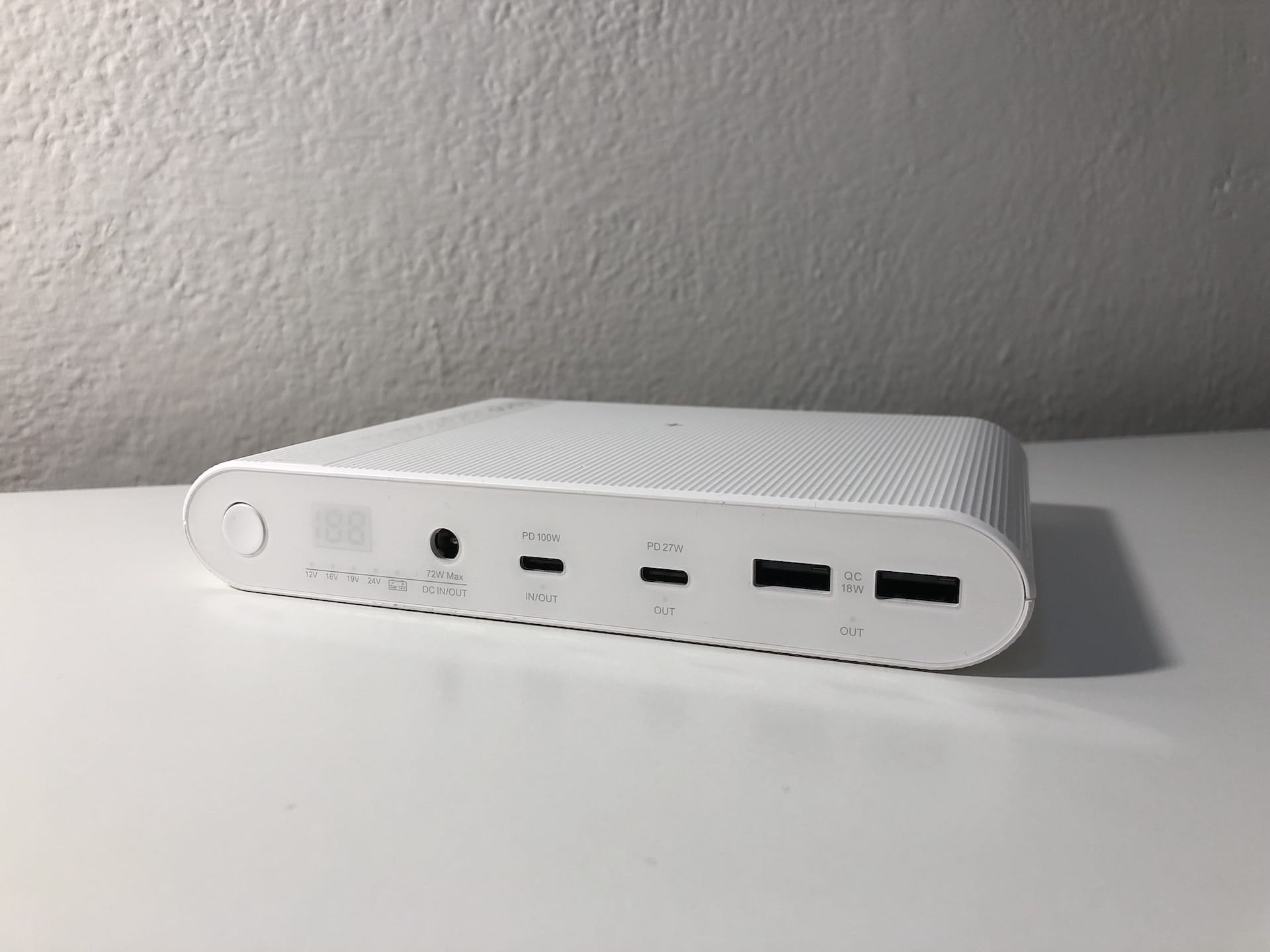 Jak navíc ze samotného názvu vyplývá, tato powerbanka je určena i pro laptopy. Proto také nechybí tradiční DC port s výstupním výkonem až 72 W. Jeho proud konkrétně činí 3 A, zatímco elektrické napětí si lze přizpůsobit v rozsahu od 12 V až do 24 V. V tomto případě samozřejmě záleží na konkrétním laptopu. DC výstup lze navíc použít i k dobití autobaterie. K tomu se ale dostaneme až později. V závěru pak ještě za zmínku stojí rozměry. Ty činí 111 x 155 x 25 milimetrů, přičemž co se týče hmotnosti, powerbanka váží skvělých 557 gramů.