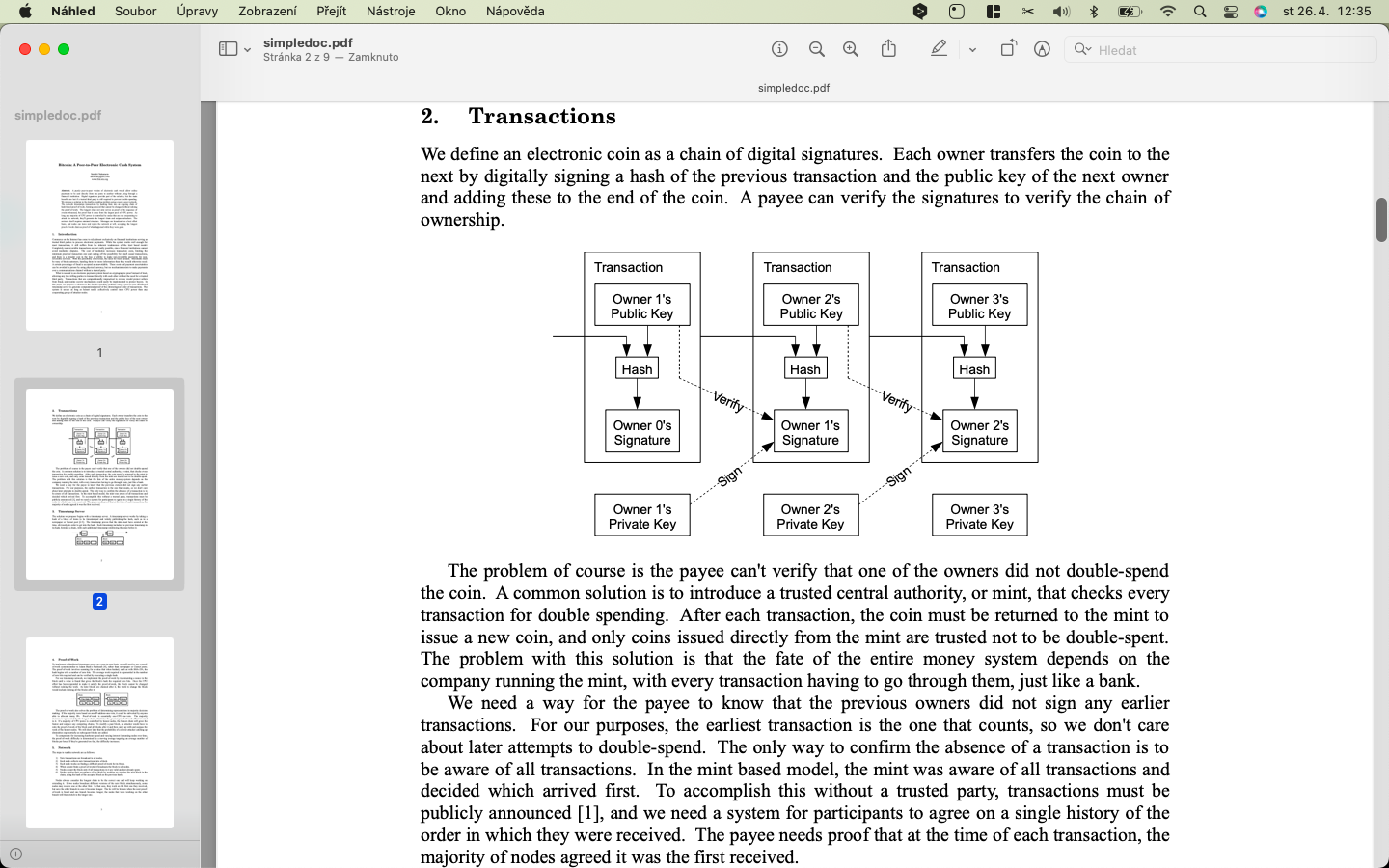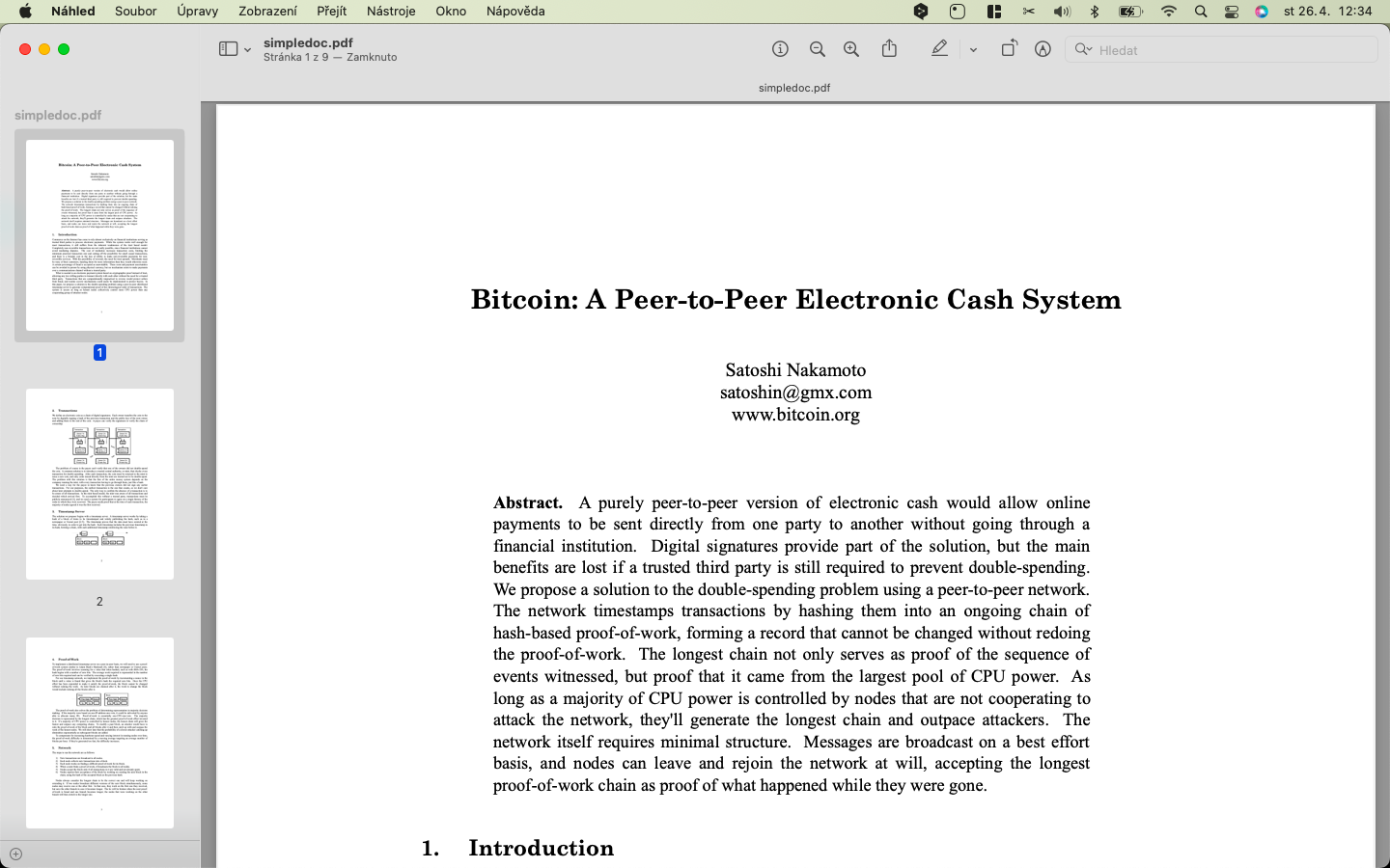 Podle všeho byl Bitcoin Whitepaper do systému přidán se nástupem macOS Mojave v roce 2018. Pokud jste svůj Mac ještě neaktualizovali na nejnovější beta verzi, můžete soubor stále najít spuštěním následujícího příkazu v Terminálu: open /System/Library/Image\ Capture/Devices/VirtualScanner.app/Contents/Resources/simpledoc.pdf