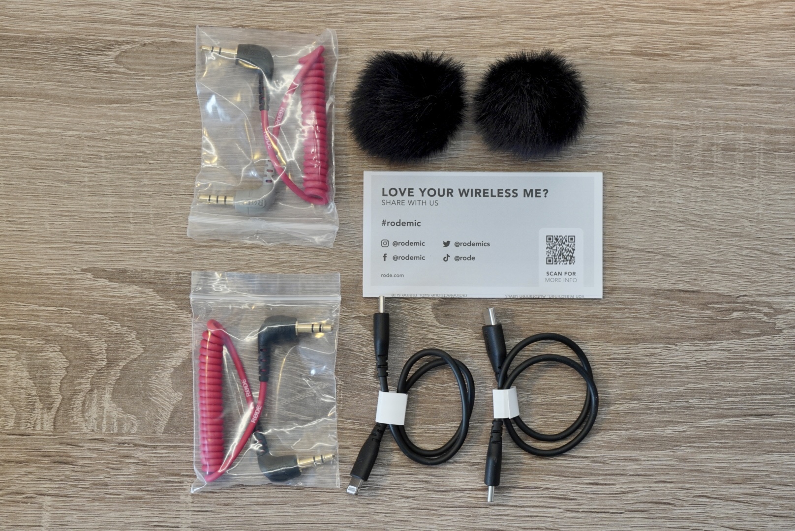 Pokud jde o zmíněnou kabeláž, Rode vám dá po jednom kabelu USB-C na Lightning pro propojení s vašim iPhonem, USB-C na USB-C, pakliže budete chtít systém připojit k počítači nebo smartphonu s Androidem, dále kabel osazený dvěma malými Jack konektory TRS 3,5 mm, který uplatníte v kombinaci například s bezzrcadlovkou nebo kamerou a výčet uzavírá kabel TRS 3,5 mm na TRRS 3,5 mm, rozhodnete-li se pro konektivitu s telefonem pomocí sluchátkového konektoru. Když jsem kupoval Rode Video Mic GO II, v balení jsem našel bohužel jen 3,5 Jack kabel, přestože jde o mikrofon, který disponuje i USB konektivitou a ostatní kabely tedy bylo nutné dokoupit. Kabelová vybavenost u Wireless Me tedy rozhodně potěší.