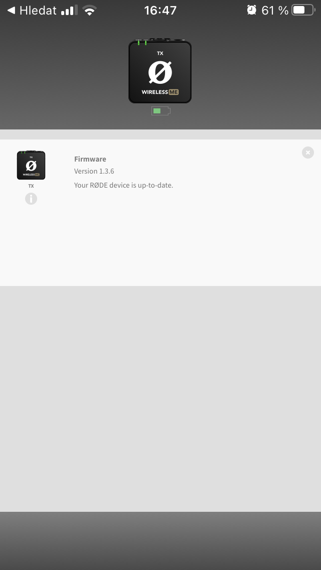 Firma Rode svoje produkty po softwarové stránce rozhodně nezanedbává, proto je pravděpodobné, že vás zařízení ihned po připojení přes USB ať už k telefonu, Macu nebo PC vyzve k updatu firmwaru. Ten je potřeba provést jak s přijímačem, tak vysílačem. Celý proces, alespoň na mém iPhonu, trvá sotva pár minut a jakmile proběhne, je systém připraven k párování nebo lze přistoupit k dalším nastavením, pakliže je chcete využít.