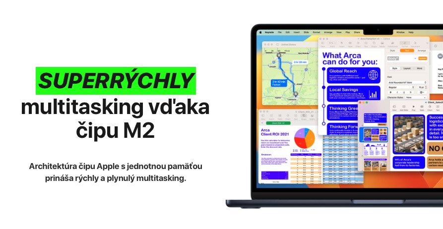 Není vůbec žádným tajemstvím, že je MacBook prvotřídním zařízení pro práci, které vás rozhodně jen tak nezklame, ba právě naopak. Již od prvního okamžiku vás velice příjemně potěší, a to svou skvělou rychlostí a výkonem. Díky čipu M2 se jedná o nenahraditelného parťáka, který jen stačí spustit a můžete se instantně vrhnout do práce. Za zmínku také stojí celková efektivita. Díky tomu jablečné laptopy nabízí bezkonkurenční výdrž baterie, kdy laptop na jedno nabití vydrží klidně i celý den.