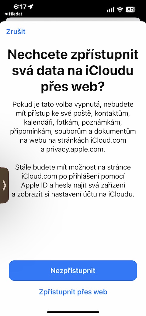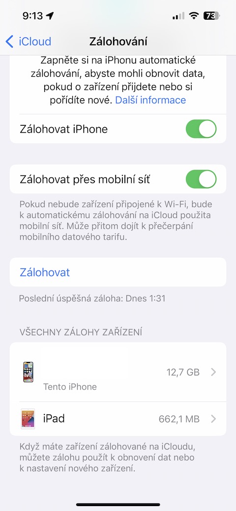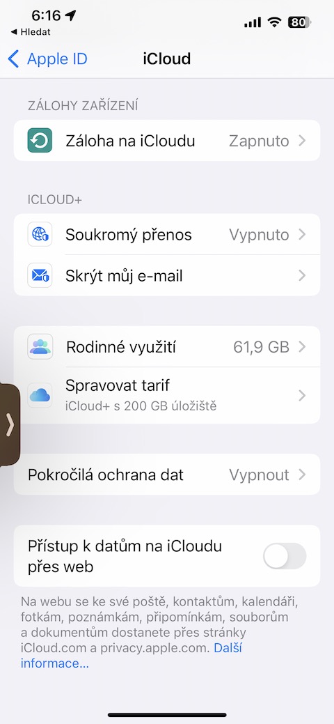 V rámci operačních systémů iOS a iPadOS můžete také využít funkci zálohování do iCloudu. V Nastavení -> Panel s vaším jménem -> iCloud -> Záloha na iCloudu -> název zařízení můžete deaktivovat nebo naopak aktivovat zálohování jednotlivých aplikací do iCloudu. Je ale důležité mít na paměti, že se jedná sice o automatické zálohy, ale nedochází k automatickému zahrnutí naprosto všech dat. Pro zpřístupnění dat na iCloudu přes web spusťte na iPhonu Nastavení -> Panel s vaším jménem -> iCloud, zamiřte zcela dolů a aktivujte položku Přístup k datům na iCloudu přes web.