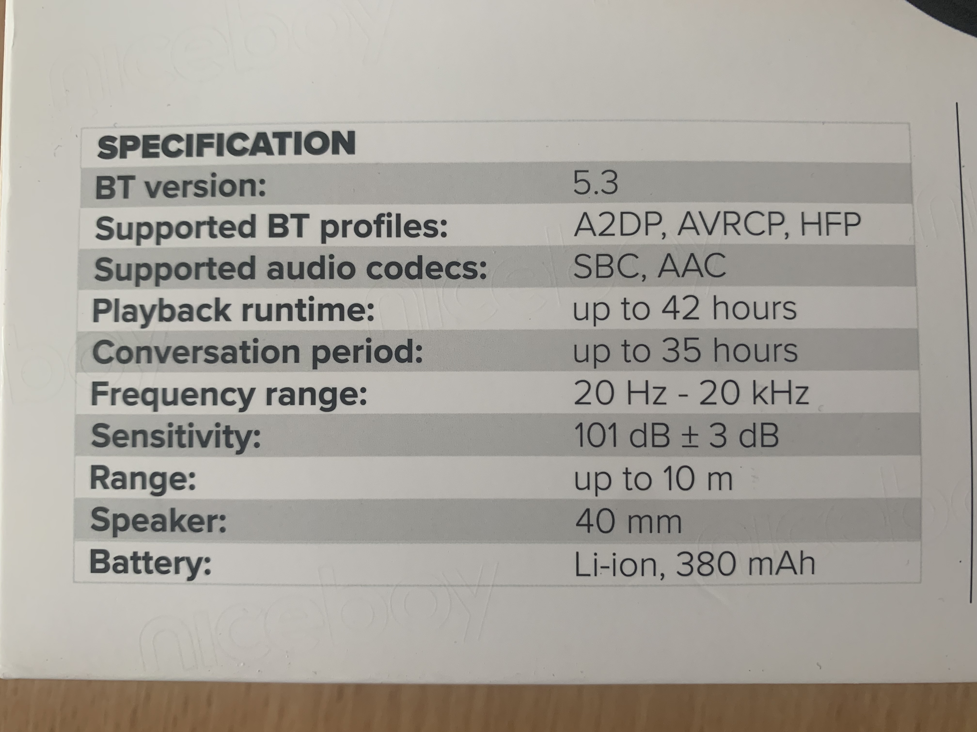Vzhledem k faktu, že jde o náhlavní sluchátka, dorazí vám Niceboy Prodigy 3 MAX v poměrně velké krabici se žlutobílým vzorem, který jde označit za velmi povedený. Ihned na přední straně si můžete všimnout designu produktu. V balení pak naleznete USB-C kabel, manuál a sluchátka. V krátkosti se také podívejme na technické specifikace. Jde o náhlavní bezdrátová Bluetooth sluchátka. Leckoho překvapí přítomnost nejnovějšího Bluetooth 5.3. Podporují kodeky AAC a SBC a na jedno nabití nabídnou velmi slušných 42 hodin poslechu díky baterii o kapacitě 380 mAh. Ve velkém ale bude záležet, při jaké hlasitosti budete sluchátka používat. Příjemná je rychlost nabíjení, kdy za pouhých 5 minut je nabijete na 100 minut hudby a za dvě hodiny jste zpět na maximu. O hudbu se starají měniče o velikosti 40 mm. Frekvenční rozsah je 20 až 20000 Hz, citlivost je 101 dB/mW a impedance 32 Ohm. Rozhodně zamrzí absence certifikace odolnosti proti vodě a prachu, tu ale nemají žádná náhlavní sluchátka v této cenové hladině.