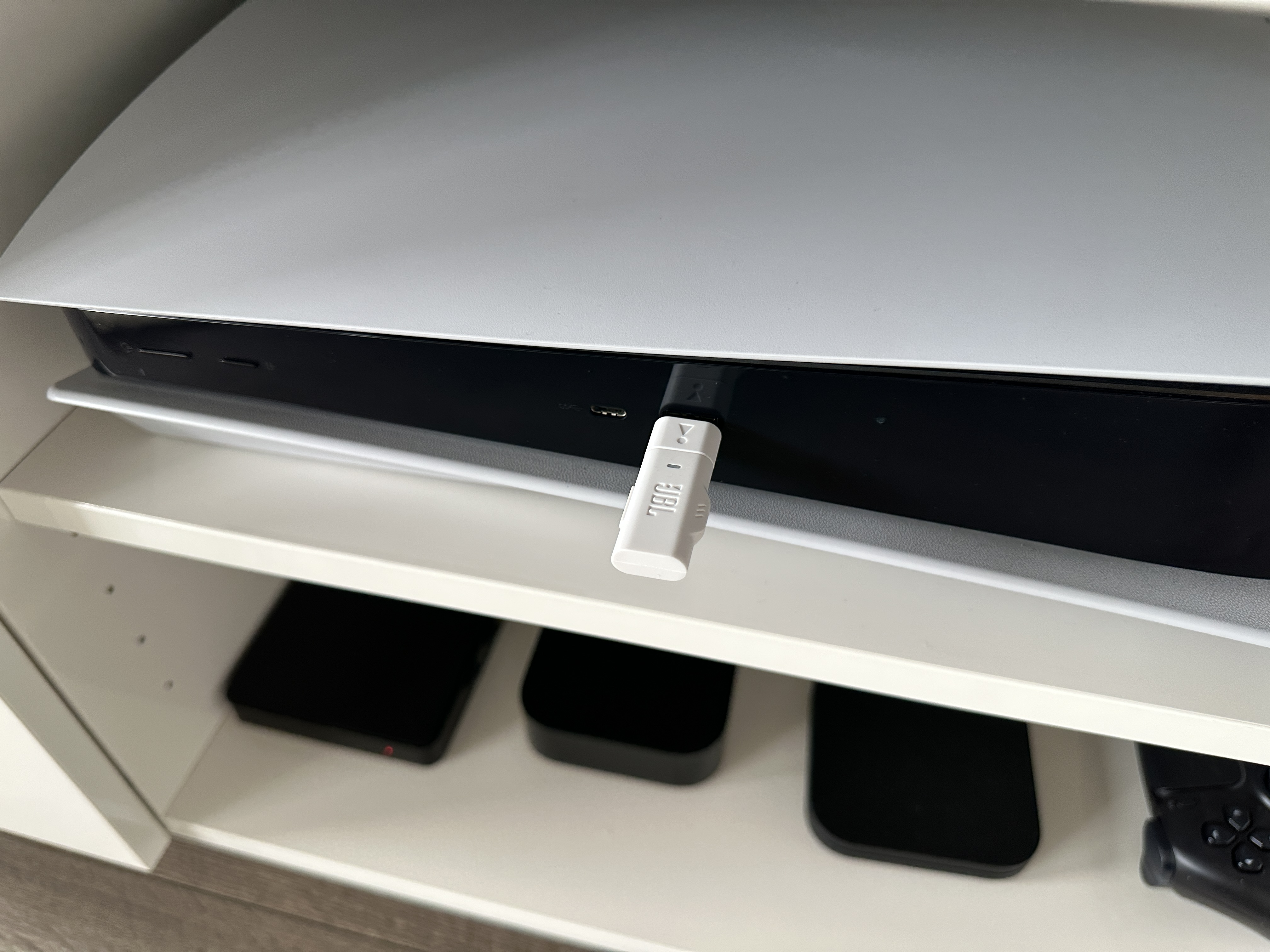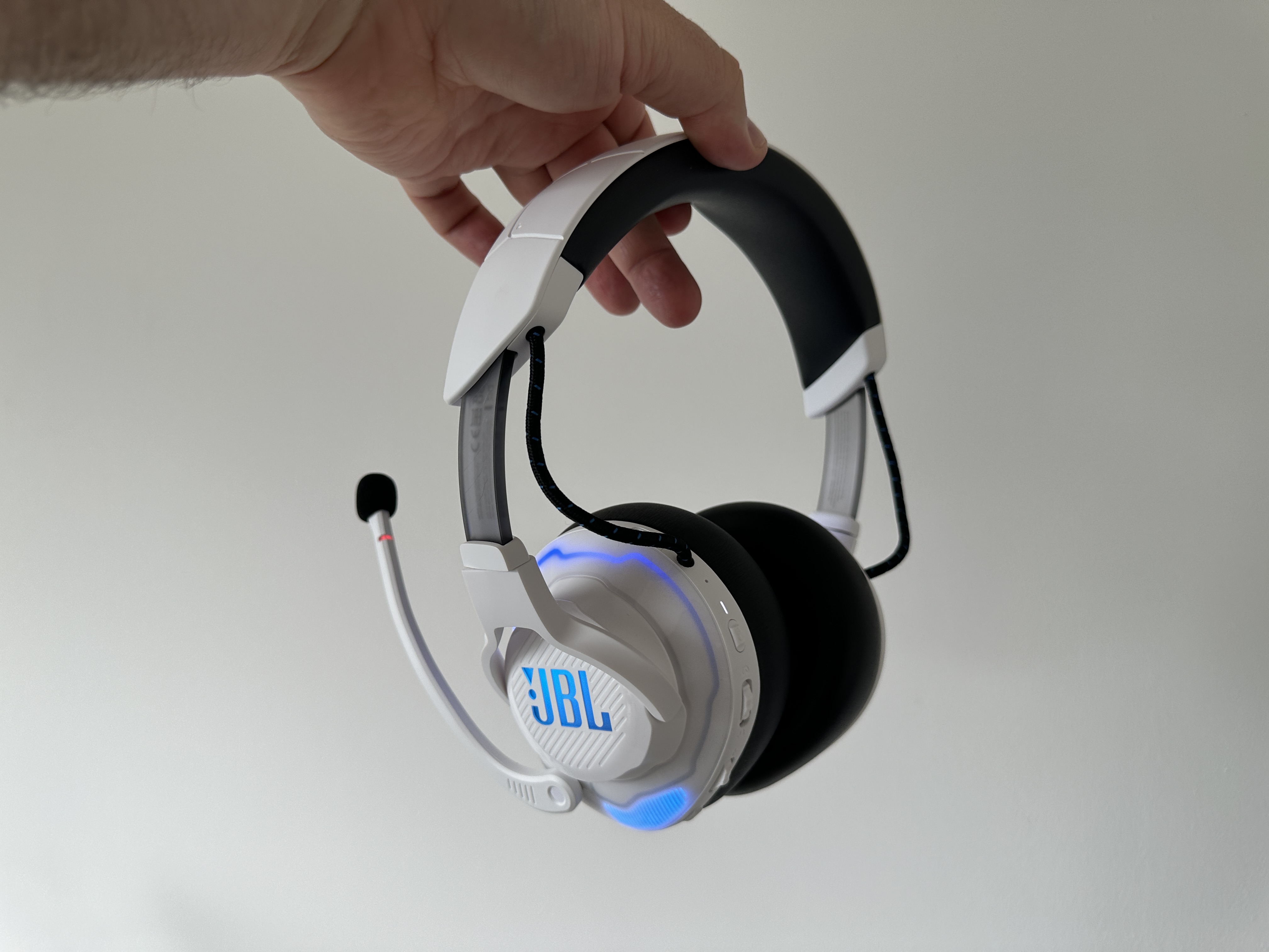 JBL Quantum 910P jsou uzavřená herní sluchátka přes hlavu, která nabízí klasický externí mikrofon, bezdrátové připojení k herní konzoli, které je možné případně pomocí kabelu změnit na drátové. Jakmile je vytáhnete z krabičky, stačí připojit USB adaptér do USB vašeho Playstationu a vše začne fungovat, jak má. Skutečně bez jakéhokoli nastavování, párování nebo čehokoli nepohodlného se okamžitě po zapnutí sluchátek přesune zvuk z televize právě do sluchátek a vy můžete začít okamžitě hrát.