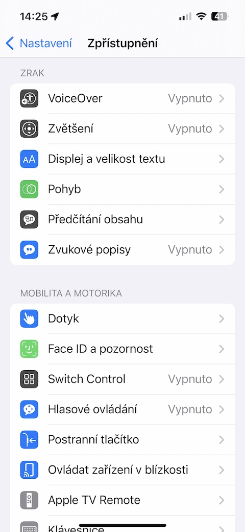 - Na iPhonu spusťte Nastavení a zamiřte do Zpřístupnění.