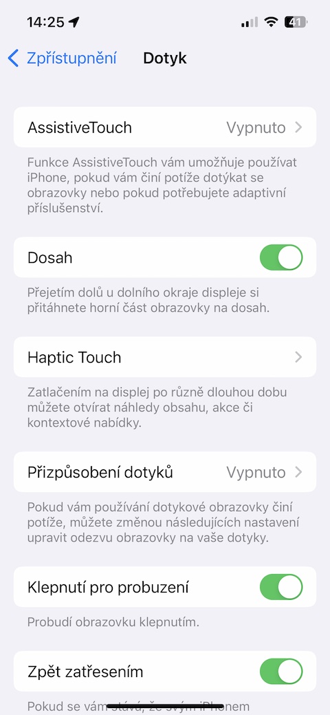 - V sekci Mobilita a motorika klepněte na Dotyk.