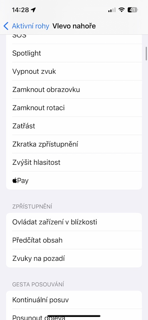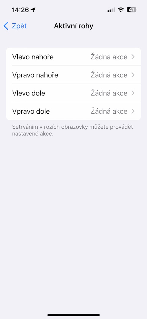 Aktivní rohy v tom smyslu, v jakém je známe z Macu, na iPhonu samozřejmě aktivovat nelze. Díky Zpřístupnění ale můžete tuto funkci celkem věrně a efektivně simulovat. Díky aktivaci aktivních rohů na iPhonu můžete získat snadný a rychlý přístup k celé řadě funkcí a částí systému. Promyslete si, k jakým akcím budete chtít aktivní rohy na vašem iPhonu využívat, a můžeme jít na to. Po nastavení spustíte vybranou funkci tak, že v příslušném rohu ponecháte kurzor asistenčního zařízení po určitou dobu.