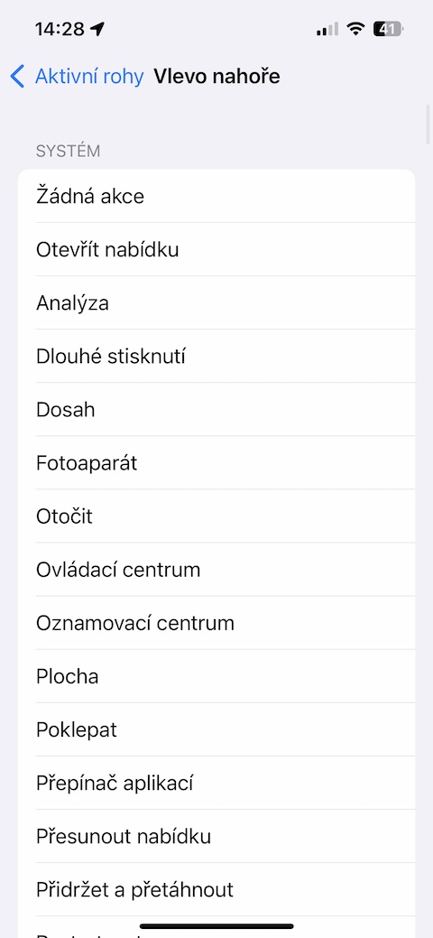 Jakmile se ponoříte do menu akcí pro aktivní rohy na iPhonu, zjistíte, že máte v tomto směru opravdu hodně možností od spuštění Ovládacího centra přes restart až třeba po pořízení snímku obrazovky. Aktivní rohy můžete stejným způsobem nastavit také na iPadu, kde vám poskytnou ještě lepší možnosti pro práci.
