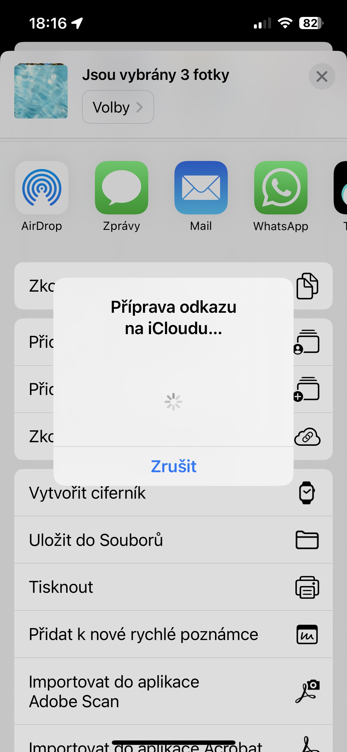 - V menu, které se vám zobrazí, zvolte Zkopírovat odkaz na iCloud.