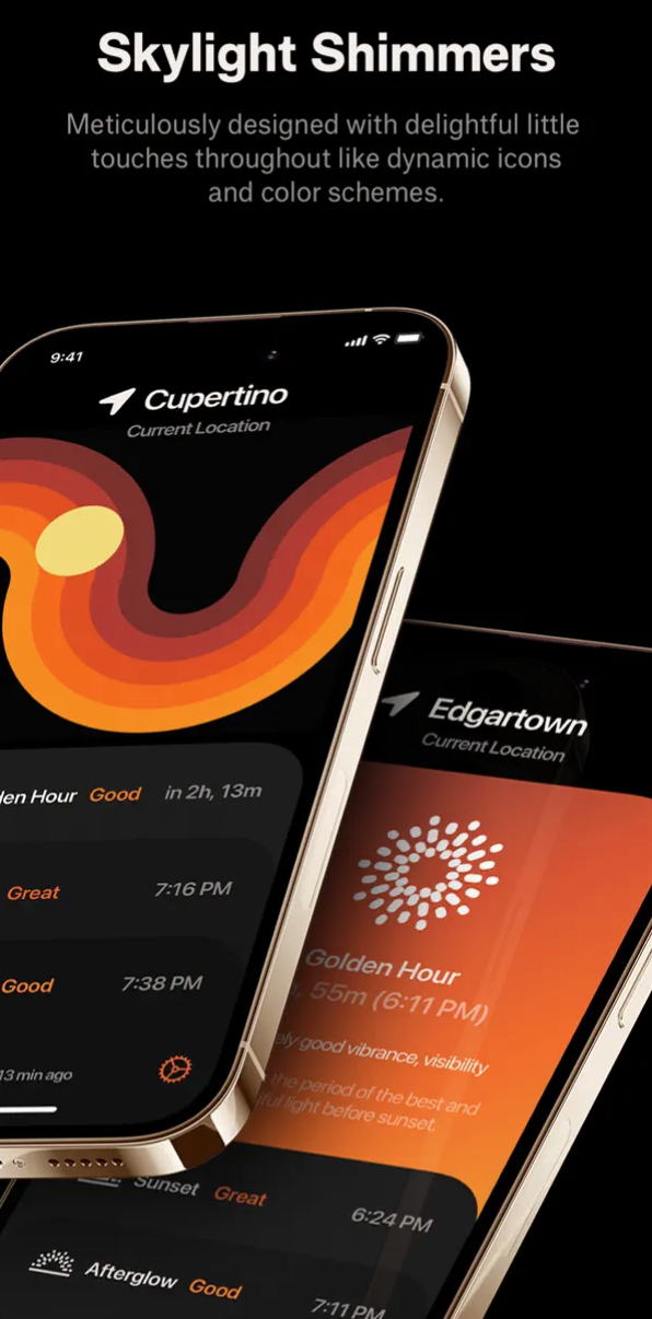 Ať už jste tvůrce, který se snaží naplánovat fotografování podle podmínek zlaté hodiny, nebo vás západy slunce a večerní světlo zajímají z jiných důvodů, Skylight vypadá jako cenný nový nástroj. Jak jsme již uvedli, Skylight mají na svědomí vývojáři ze společnosti Lux Optics, která stojí například za populární fotografickou aplikací Halide. Skylight podle slov svých tvůrců zohledňuje „desítky atmosférických faktorů“ pro danou lokalitu a na základě příslušných dat poskytuje „denní předpověď zlaté hodinky, západu slunce a následného svitu.“ Jinými slovy vám dokáže předpovědět, zda se můžete těšit na velkolepý západ slunce, průměrné osvětlení, nebo zda tentokrát nemá vůbec cenu se o něco pokoušet.