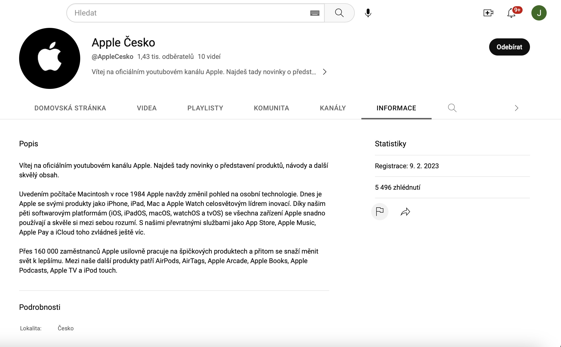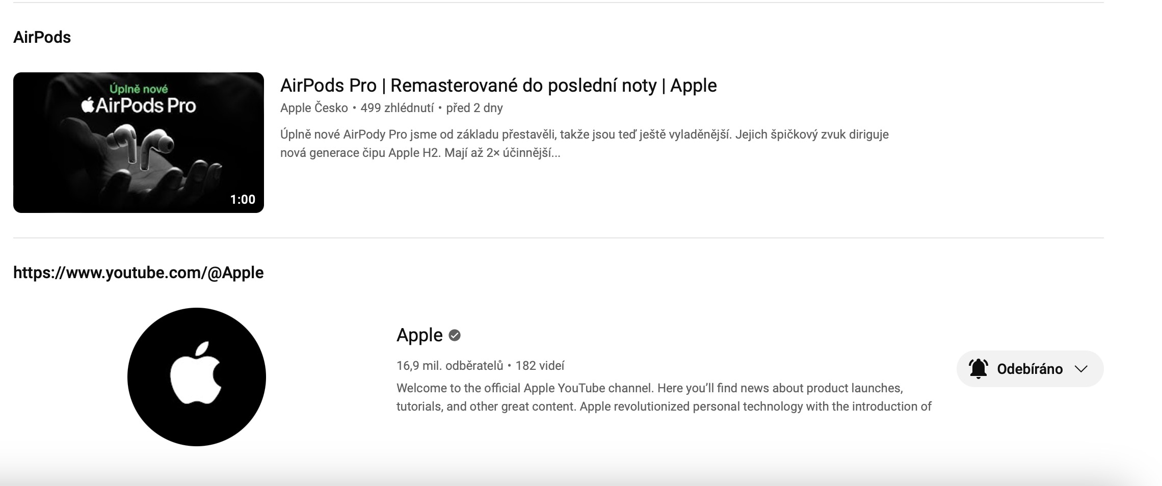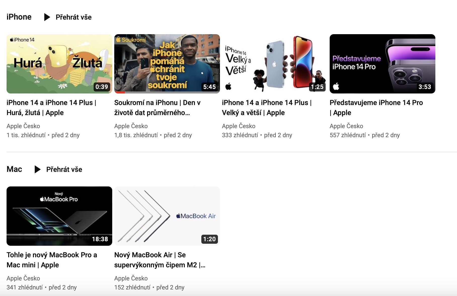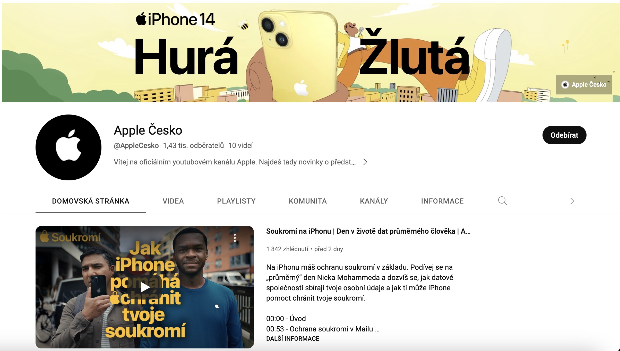 Český YouTube kanál Applu si můžete prohlédnout zde