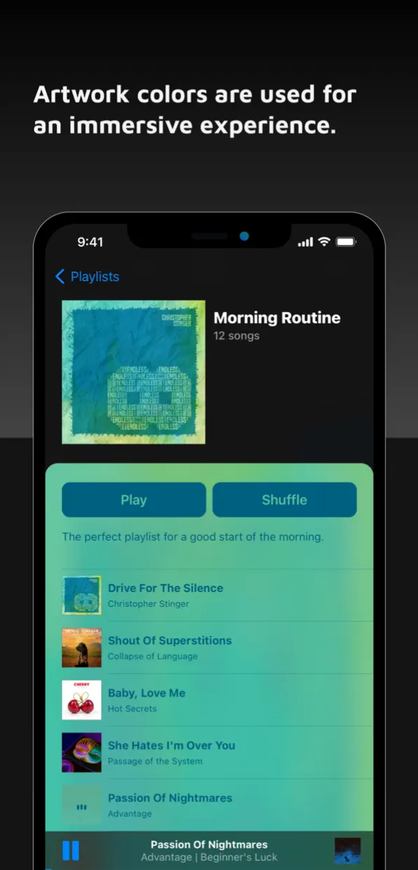 Soor je další povedená aplikace pro všechny, kterým nestačí základní funkce a vzhled aplikace Apple Music. Nabízí ručně sestavované playlisty, pokročilé možnosti přehrávání, podporu gest nebo různé motivy vzhledu, to vše v dobře vypadajícím, dokonale intuitivním uživatelském rozhraní. Soor nabízí také podporu služeb Musixmatch nebo Last.fm, chytré notifikace a spoustu dalšího.