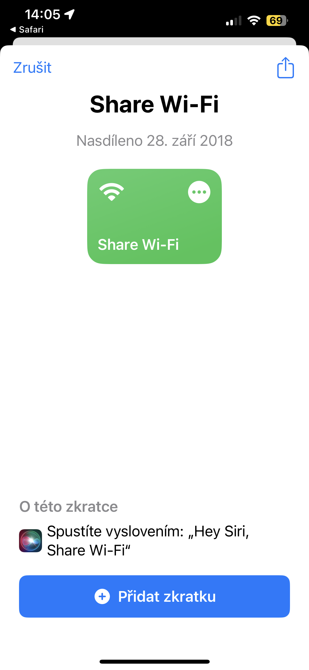 Jedním z nejjednodušších a nejrychlejších způsobů, jak sdílet Wi-Fi z iPhonu na Android, je jeho sdílení prostřednictvím QR kódu. Díky tomu vám odpadnou starosti s diktováním hesla nebo s jeho ručním zadáváním do zařízení dotyčné osoby. Ke sdílení hesla přes QR kód vám poslouží zkratka s výstižným názvem Share Wi-Fi.