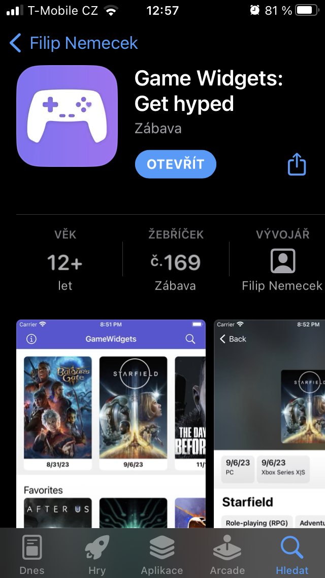 Aplikace Game Widgets je zdarma ke stažení z obchodu App Store, přičemž přístup ke všem widgetům je také bez poplatků, pouze v případě, že byste chtěli mít možnost zobrazení více než 3 oblíbených her, lze tuto eventualitu odemknout za roční předplatné 99 Kč, jimiž zároveň podpoříte Filipovu práci.