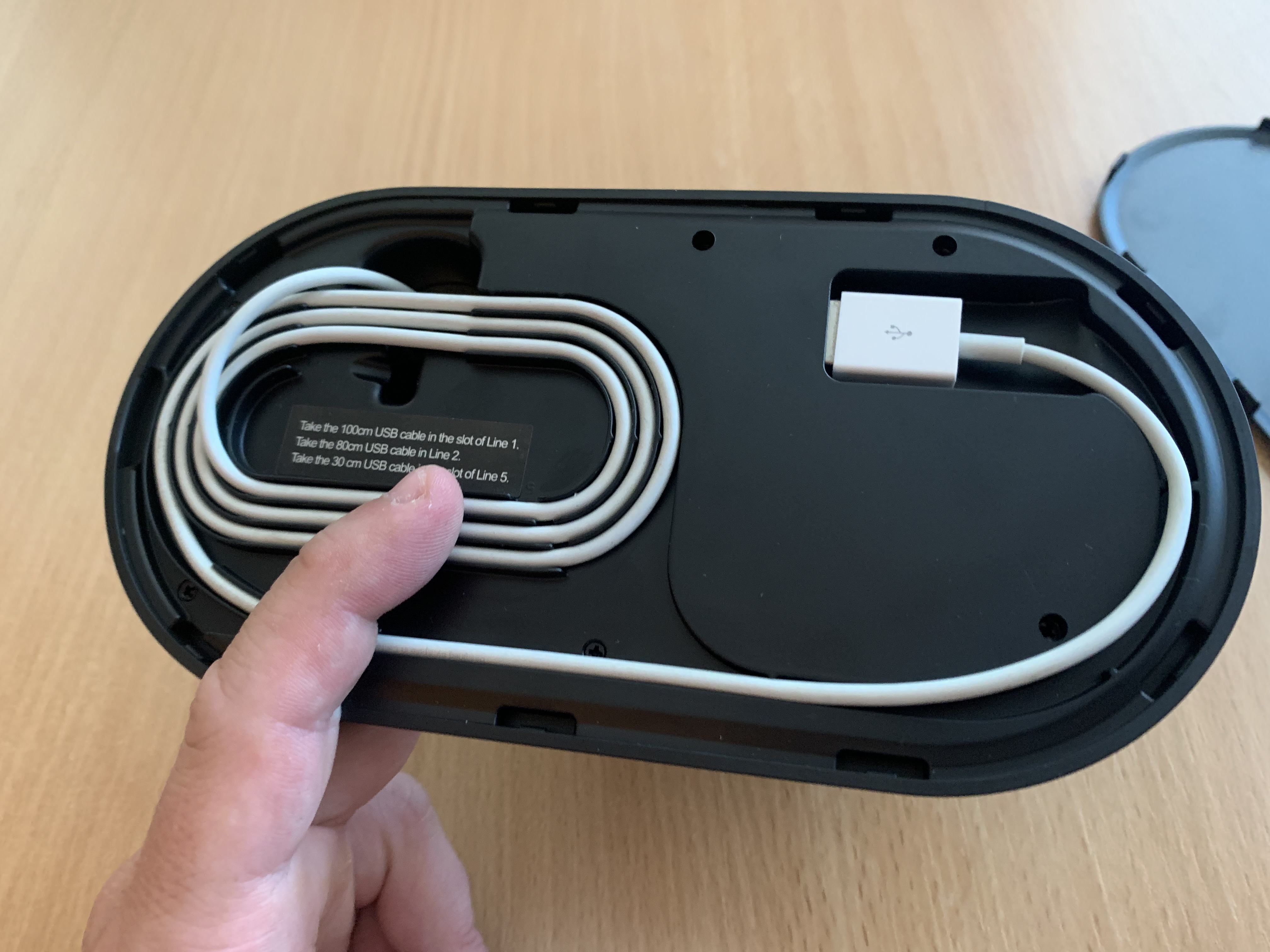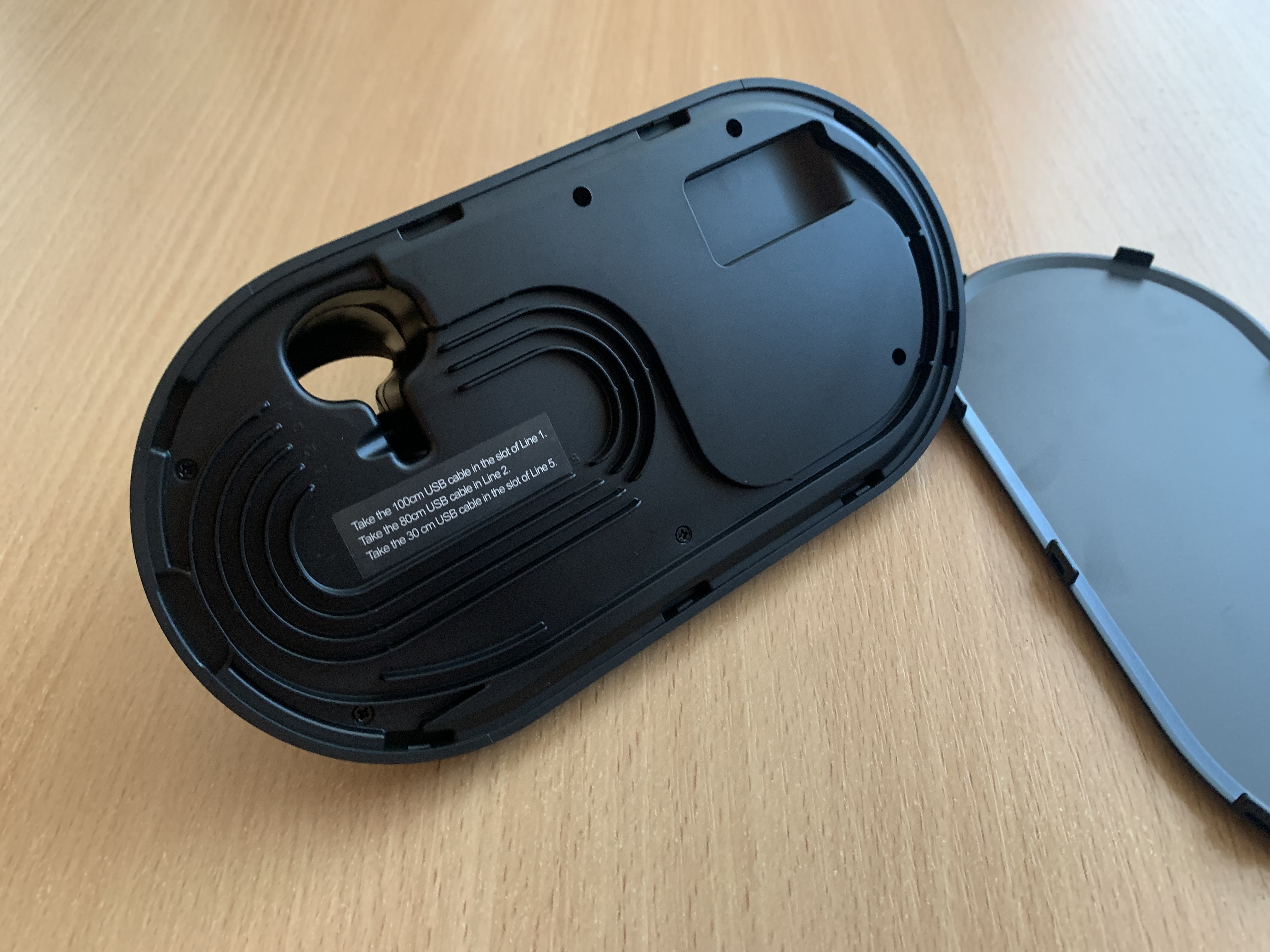 Při pohledu na nabíjecí stojánek vás žádné překvapení nečeká. Největší zkosená plocha přirozeně slouží k bezdrátovému nabíjení smartphonu. Po pravé straně je pak ikona s plochou pro nabíjení sluchátek. Celý produkt má dvě výstupní nabíjecí plochy. Je tedy jasné, že s Apple Watch si budete muset jistým způsobem poradit. Je zde otvor, kudy prostrčíte kabel, který musíte zapojit do USB konektoru, jenž se skrývá pod spodní oddělitelnou stranou. Pokud kryt odděláte, uvidíte kromě zmíněného USB konektoru taktéž „bludiště“, kterým kabel povedete. Ano, ruku na srdce – je to otrava a zřejmě se vám to nepovede na první pokus. Ovšem budete to dělat pouze jednou. Produktu by jistě slušela třetí výstupní plocha s magnetem. Nicméně kvůli co nejnižší možné ceně Swissten přišel s tímto řešením. A kdo má doma Apple Watch, má jistě i nabíjecí kabel. Na čelní straně produktu lze pak pochválit dvojici LED diod, které vám indikují, zda se přiložené zařízení správně nabíjí. USB-C konektor pro vstup je pak na zadní straně.