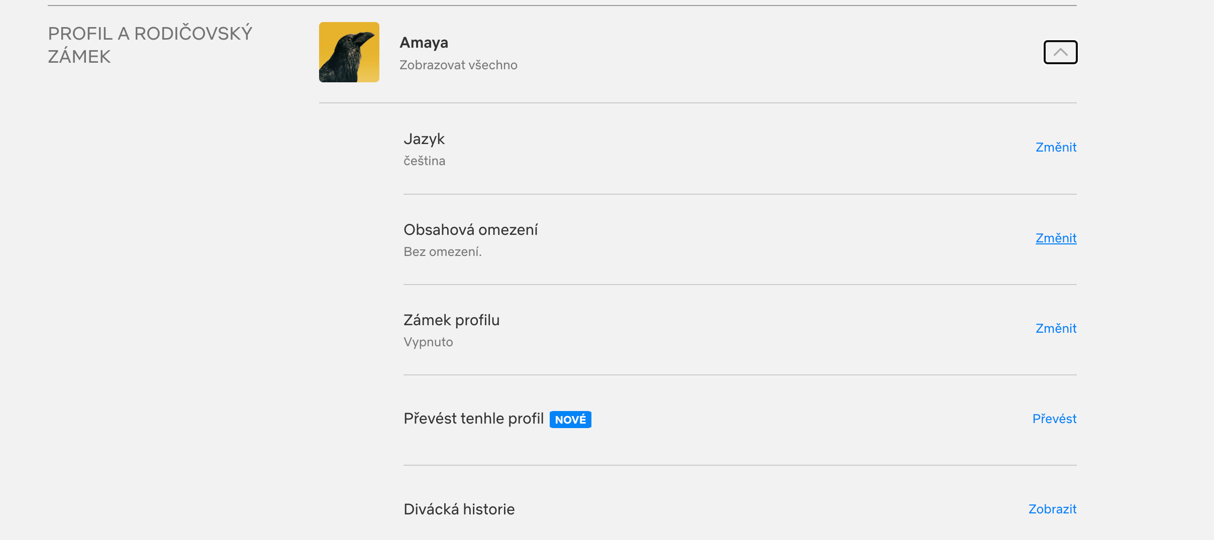 Na Netflixu si můžete také uzamknout váš profil, aby se k němu nedostali další uživatelé. Pokud si chcete nastavit zámek profilu, navštivte webovou verzi Netflixu a v pravém horním rohu klikněte na ikonku vašeho profilu. Zvolte Účet -> Profil a rodičovský zámek, vyberte váš profil a následně v sekci Zámek profilu klikněte na Změnit.