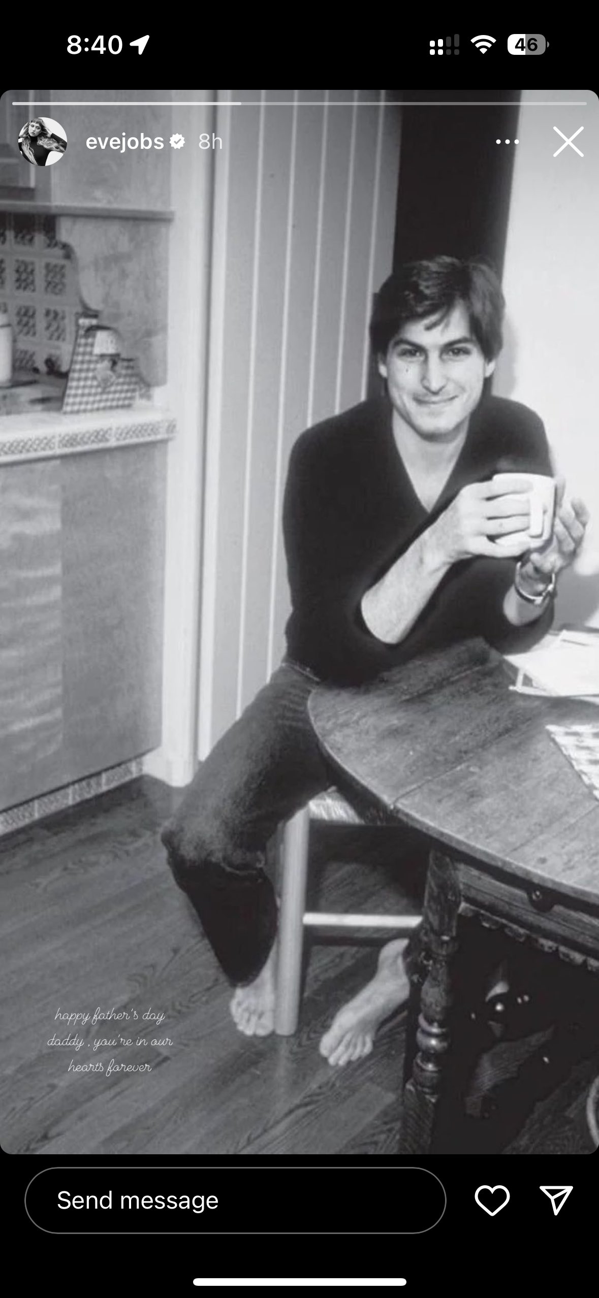 Na 18. června připadá každoročně Den otců. Jeho popularita je sice stále podstatně nižší než tomu je třeba u Dne matek, nicméně v posledních letech se jeho popularita přeci jen zvyšuje a tátové se tak díky tomu dočkávají od svých ratolestí nejrůznějších dárečků, milých slov a tak podobně. Ti, co už otce nemají, si na něj zase v tento den mohou vzpomenout víc než kdy jindy a hlavně jej připomenout i ostatním, což je i případ Eve Jobs – tedy dcery zesnulého Steva Jobse a jeho manželky Laurene Powell Jobs. Eve totiž na svém instagramovém účtu na Steva včera jednou ze stories zavzpomínala. Vzhledem k tomu, že Steve už není mezi námi dlouhé roky, zřejmě nikoho nepřekvapí, že se instagramový příspěvek Eve nesl v poměrně smutném duchu. Obsahoval totiž konkrétně jednu černobílou fotku Steva s přáním „happy father’s day, daddy. you’re in our hearts forever“, tedy v překladu „šťastný den otců, tati. Jsi navždy v našich srdcích.“ Na příspěvek se můžete podívat níže.