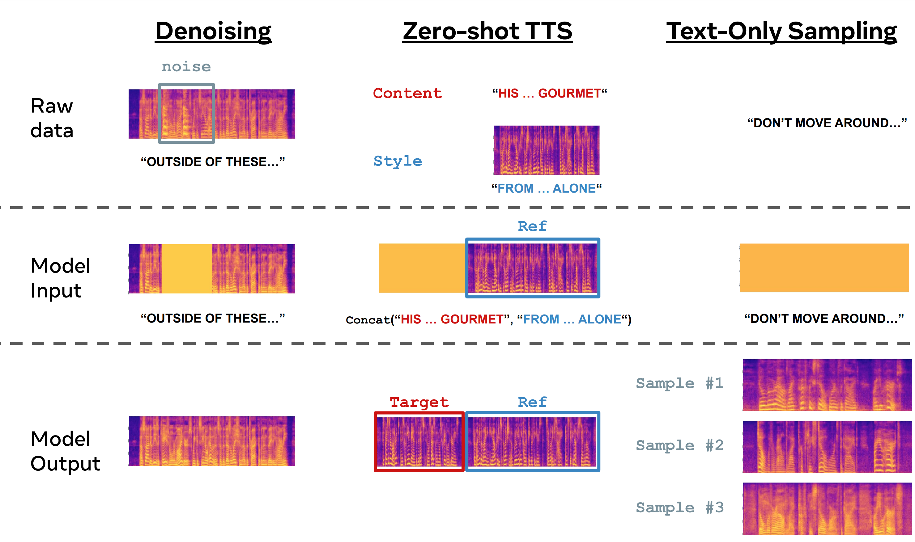 Generátor řeči od společnosti Meta nese název Voicebox a lze jej nastavit tak, aby vytvářel různé výstupy v různých stylech. Aktuálně nástroj dokáže mluvit v šesti jazycích a podporuje řadu funkcí jako je například odstranění šumu. Meta tvrdí, že Voicebox je narozdíl od předcohzích systémů generujících řeč mnohem dál a to zejména díky systému Flow Matching, který umožňuje systému učit se řeči normálníh lidí a trénovat tak na rozmanitých datech.