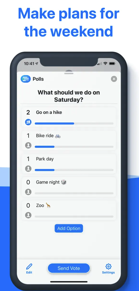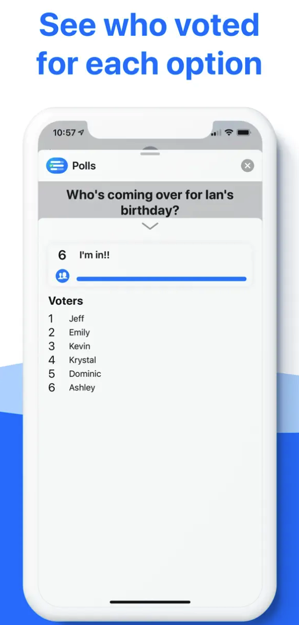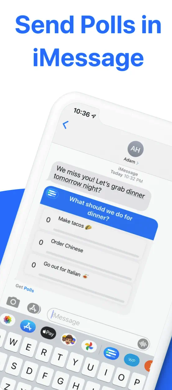 Pokud v rámci konverzací v iMessage často řešíte to, kde se sejít, který večer uspořádat akci, jaké aktivity podniknout a podobně, aplikace s názvem Polls vám umožní zjistit názor všech účastníků konverzace. Stačí jen zadat název ankety a přidat požadované možnosti odpovědí.