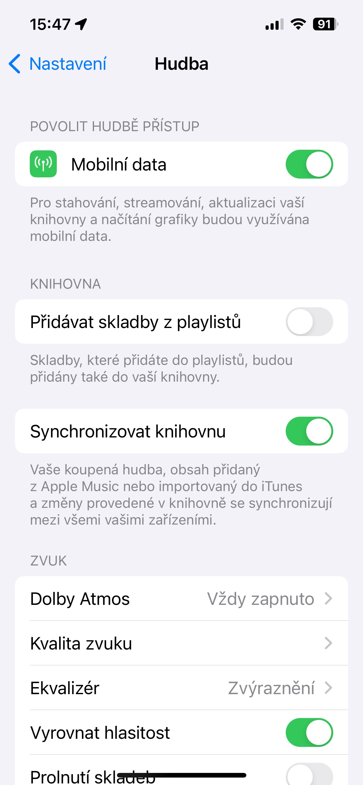 Když najdete skladbu, kterou chcete přidat do seznamu skladeb, můžete ji také automaticky zařadit do své hudební knihovny. To znamená, že skladbu budete mít vždy k dispozici, i když seznam skladeb odstraníte. Spusťte na iPhonu Nastavení -> Hudba, zamiřte do sekce Knihovna a aktivujte položku Přidávat skladby z playlistů.