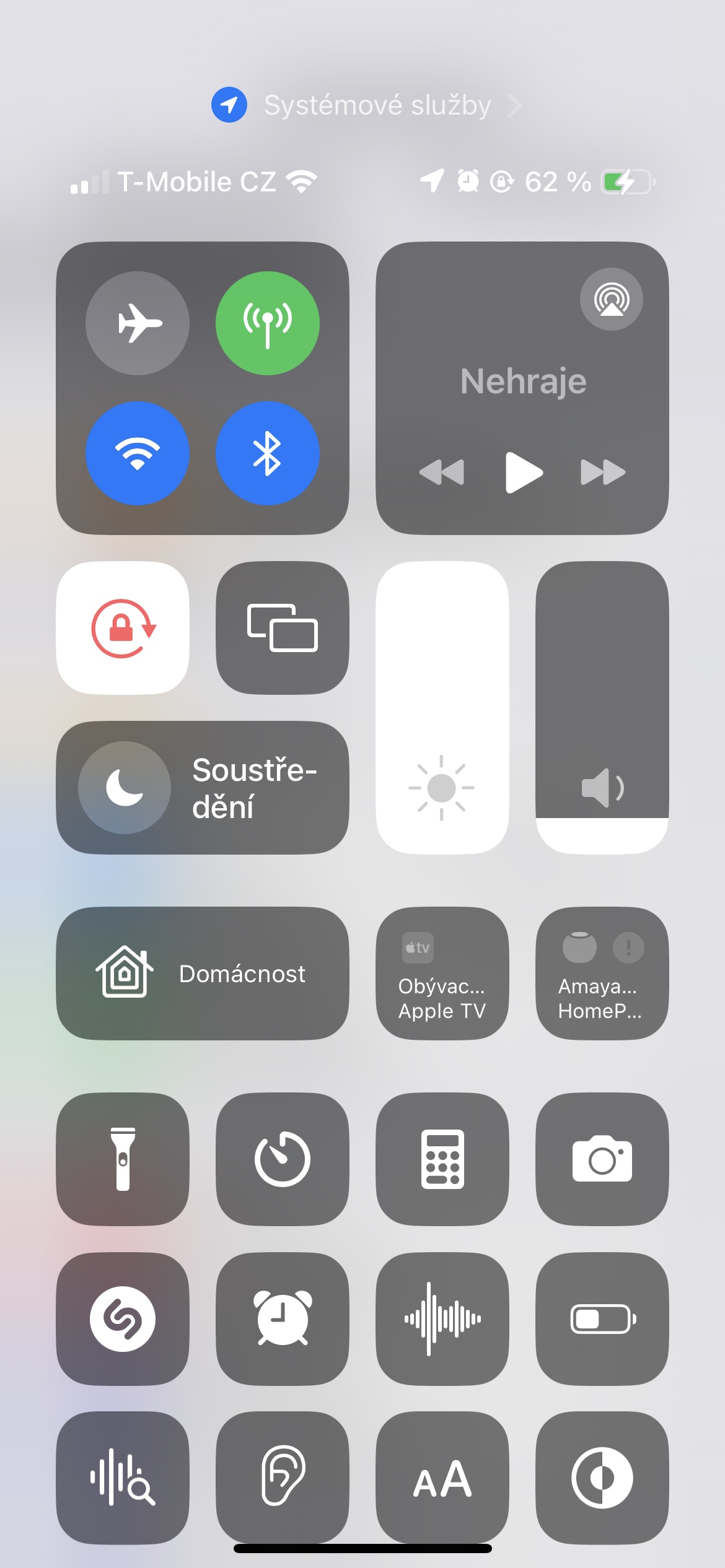 - Pro jeho aktivaci spusťte na iPhonu Ovládací centrum potažením prstu z pravého horního rohu směrem ke středu displeje.