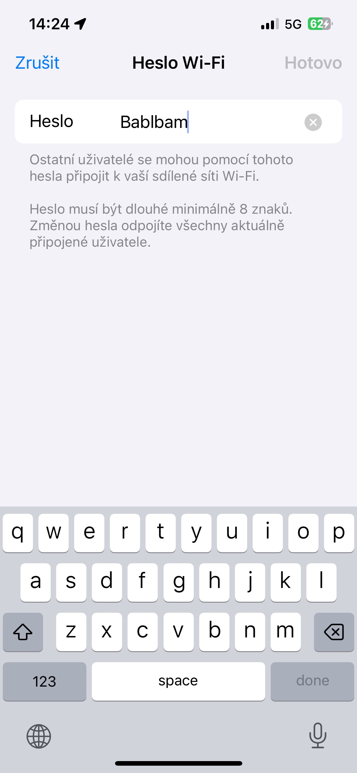 - Klepnutím na Heslo Wi-Fi můžete případně nastavit heslo, které musí ostatní zadat, pokud se budou chtít připojit k vašemu osobnímu hotspotu.