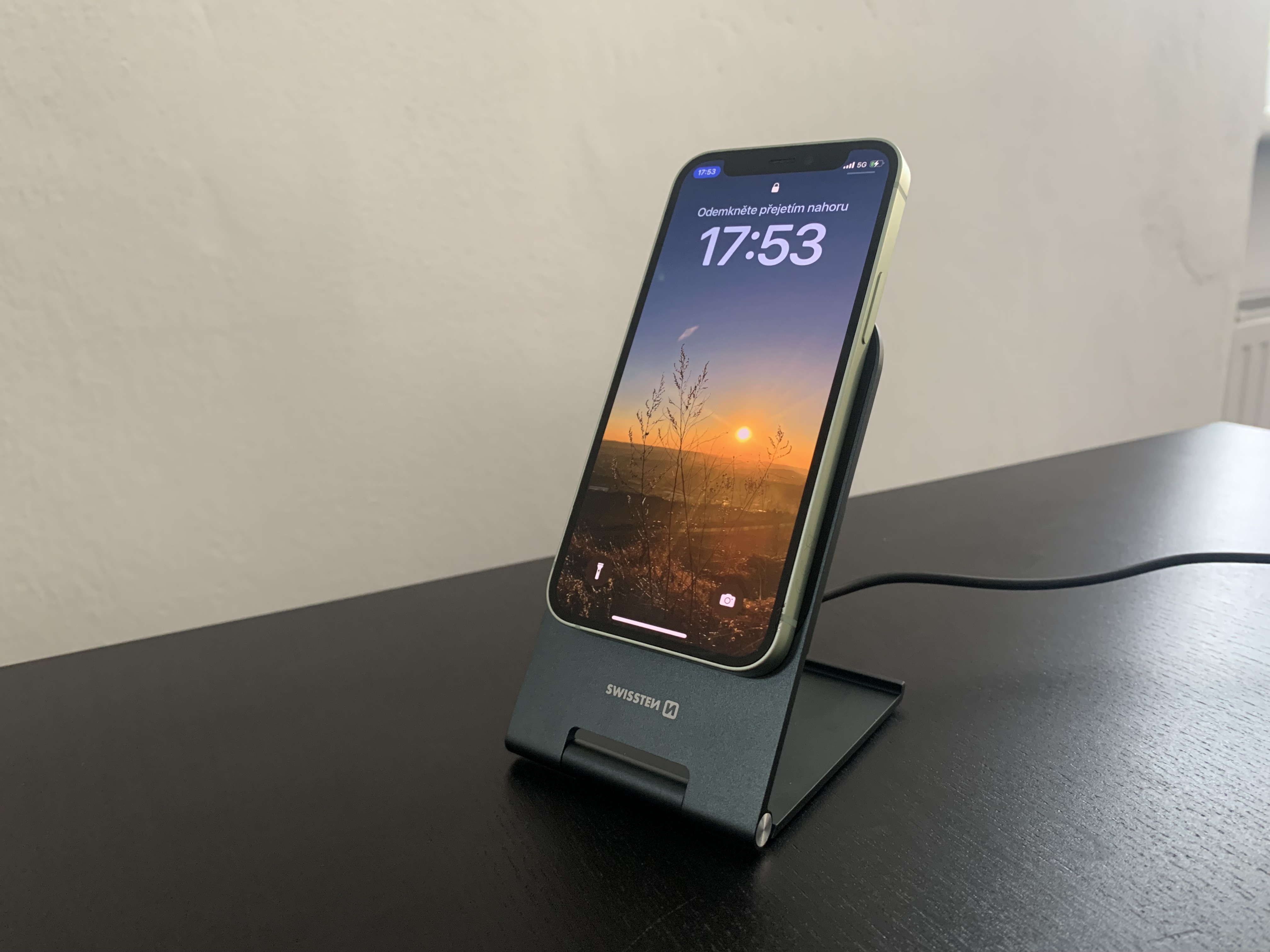 Není to sice produkt, který by nabízel něco navíc, ale svůj účel plní na jedničku. Jelikož s nabíjením příliš nespěchám, zapojil jsem adaptér v práci do Macu mini. Ačkoli nabíjení trvá trochu déle, iPhone se časem nabije. MagSafe adaptér navíc slouží perfektně i jako stojan. Spolehlivě tak vidíte příchozí notifikace/hovory. Malým neduhem všech podobných MagSafe nabíječek je zpravidla nutnost sundat kryt. Nicméně i na toto Swissten myslí a ve svém portfoliu má i čiré kryty podporující MagSafe.
