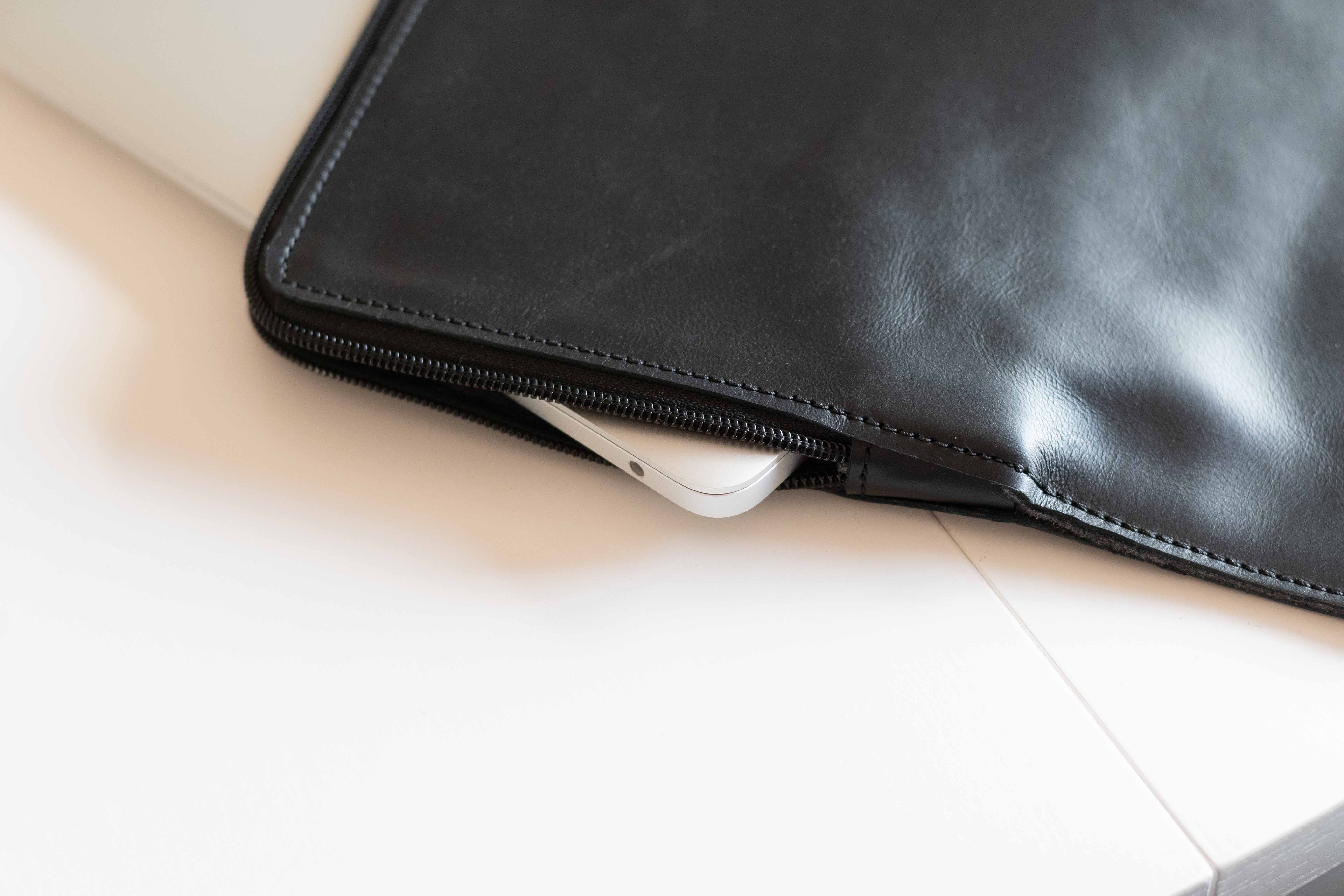 Kromě hlavní kapsy pro úschovu MacBooku či dalších předmětů mě na pouzdru dost baví i zadní kožené držadlo, pod které se dá provléct ruka a pouzdro tak uchytit s větší jistotou. A nebo jej za něj můžete držet skoro jako klasickou tašku, jelikož je i po vložení MacBooku relativně volné a tedy ani tento styl úchopu zde není problém. V takovém případě sice počítejte s tím, že zapínání pouzdra bude směřovat dolů, což může někomu vadit, avšak já osobně s tím problém neměl, protože zip se sám od sebe logicky jen tak nerozepne.