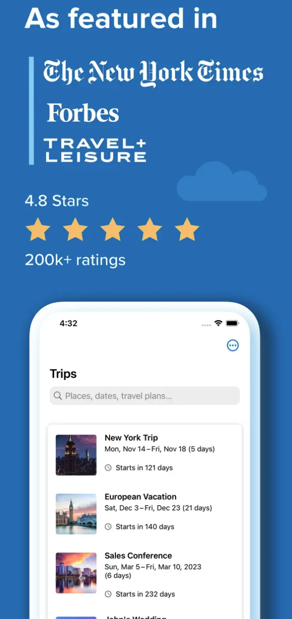 Multiplatformní aplikace TripIt: Travel Planner si získala oblibu doslova u milionů uživatelů. S její pomocí si můžete snadno a efektivně vytvořit podrobný itinerář vaší cesty, nahrát důležité dokumenty ve formátu PDF, ale třeba také QR kódy. Aplikace nabízí propojení s Google Maps a Apple Maps a spoustu dalších výhod.
