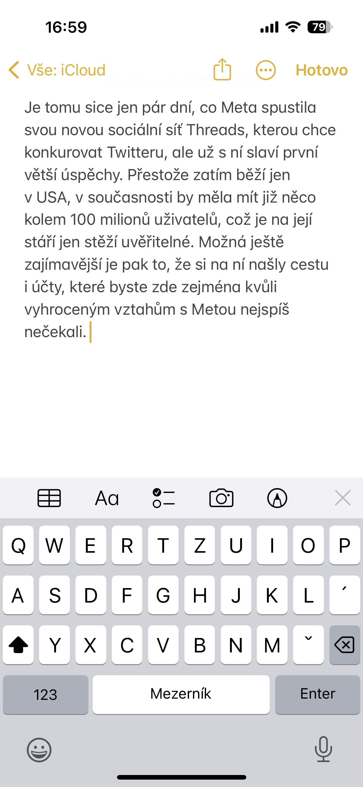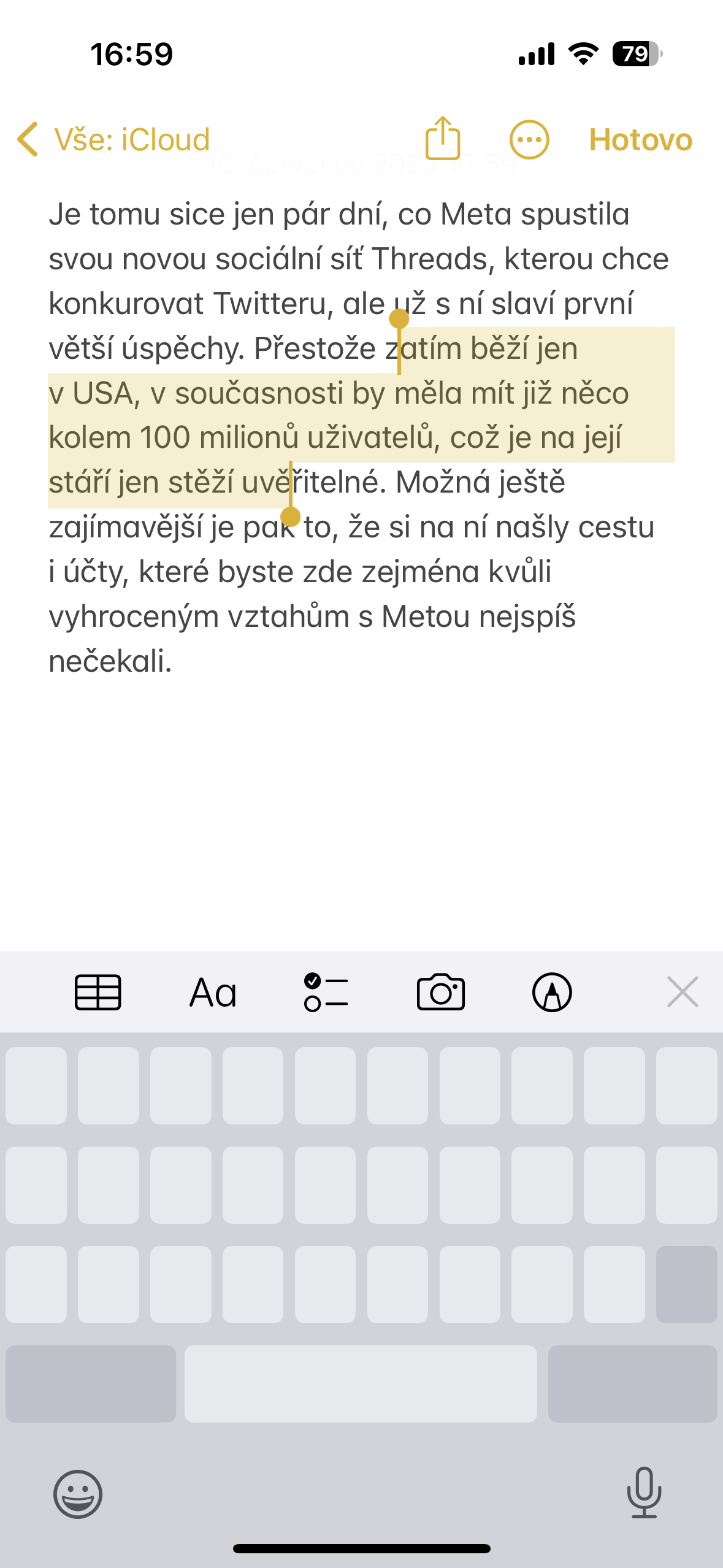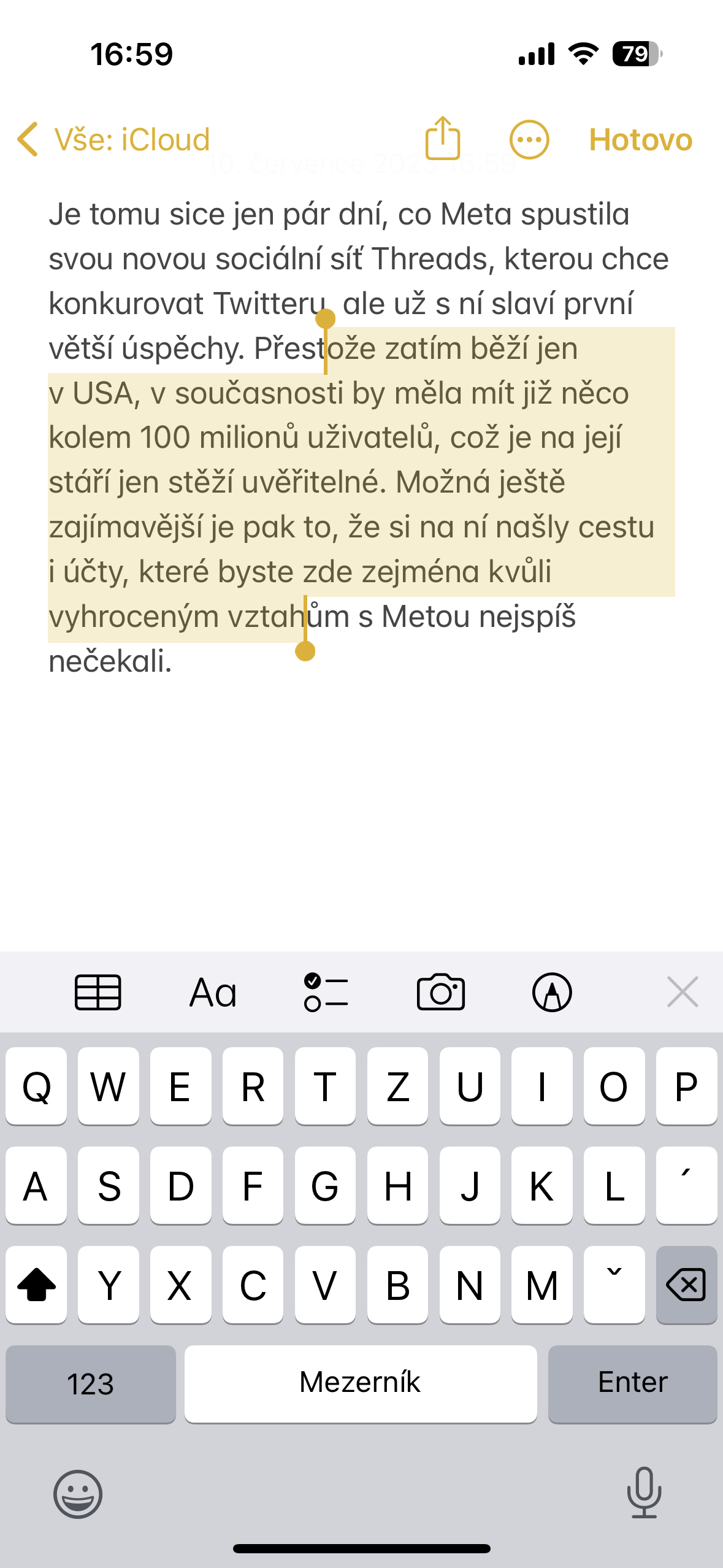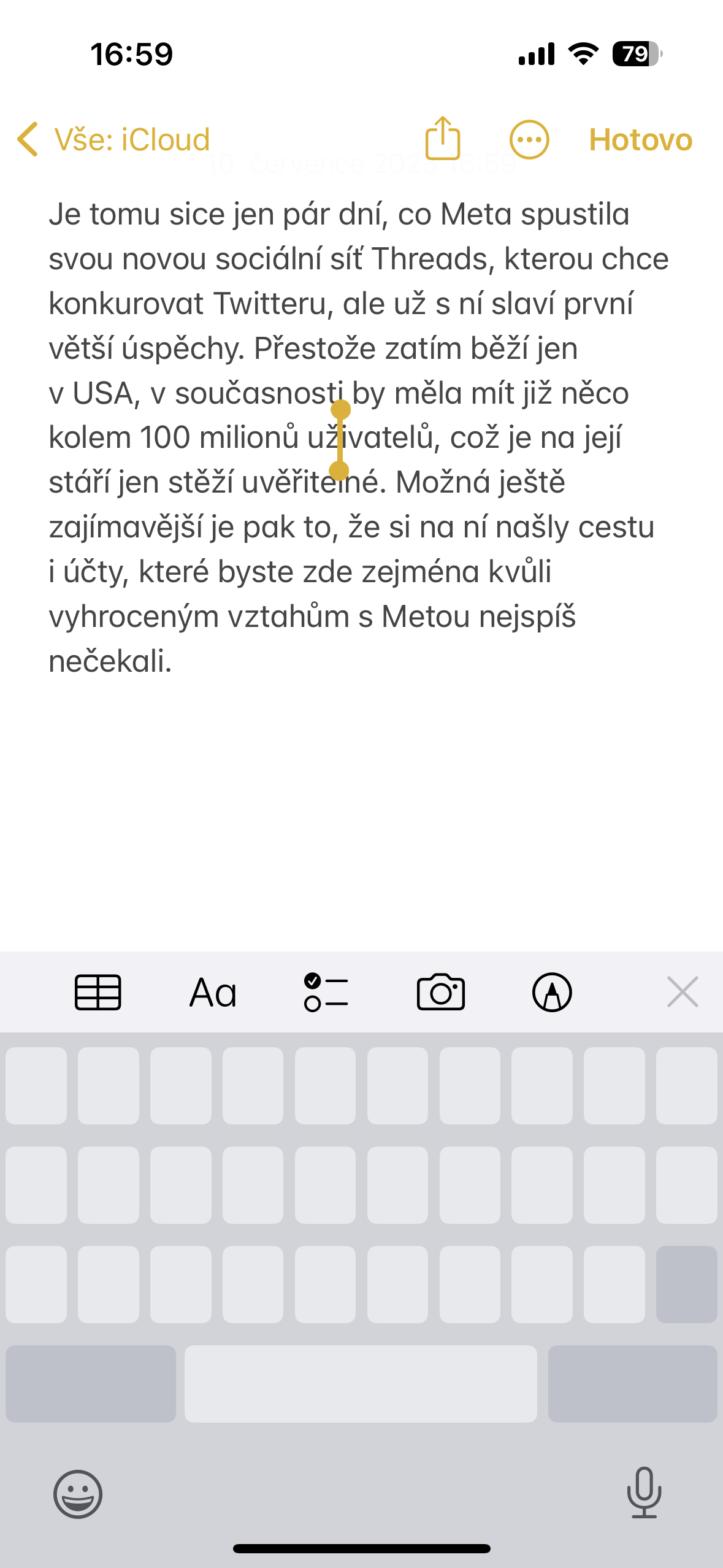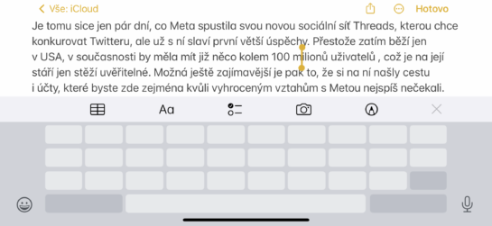 Pokud potřebujete na iPhone editovat text, nejdůležitější zvlášť u delších textů je se v nich umět rychle a pohodlně pohybovat. To na Macu děláme pomocí kurzoru, což však, i když to mnoho lidí neví, jde dělat i na iOS. Stačí totiž, když kdykoli, kdy se vám zobrazí virtuální klávesnice, podržíte dohromady tlačítko shift a mezerník. Následně z klávesnice zmizí znaky a vy ji můžete používat celou jako touchpad pro pohyb kurzorem, který se zobrazil v textu. Pokud podržíte na klávesnici dva prsty, pak text označujete, pokud jen jeden, pak se v něm jednoduše pohybujete pomocí virtuálního kurzoru. Pokud jste o tom nevěděli, určitě to vyzkoušejte, usnadníte si práci při editaci textů.