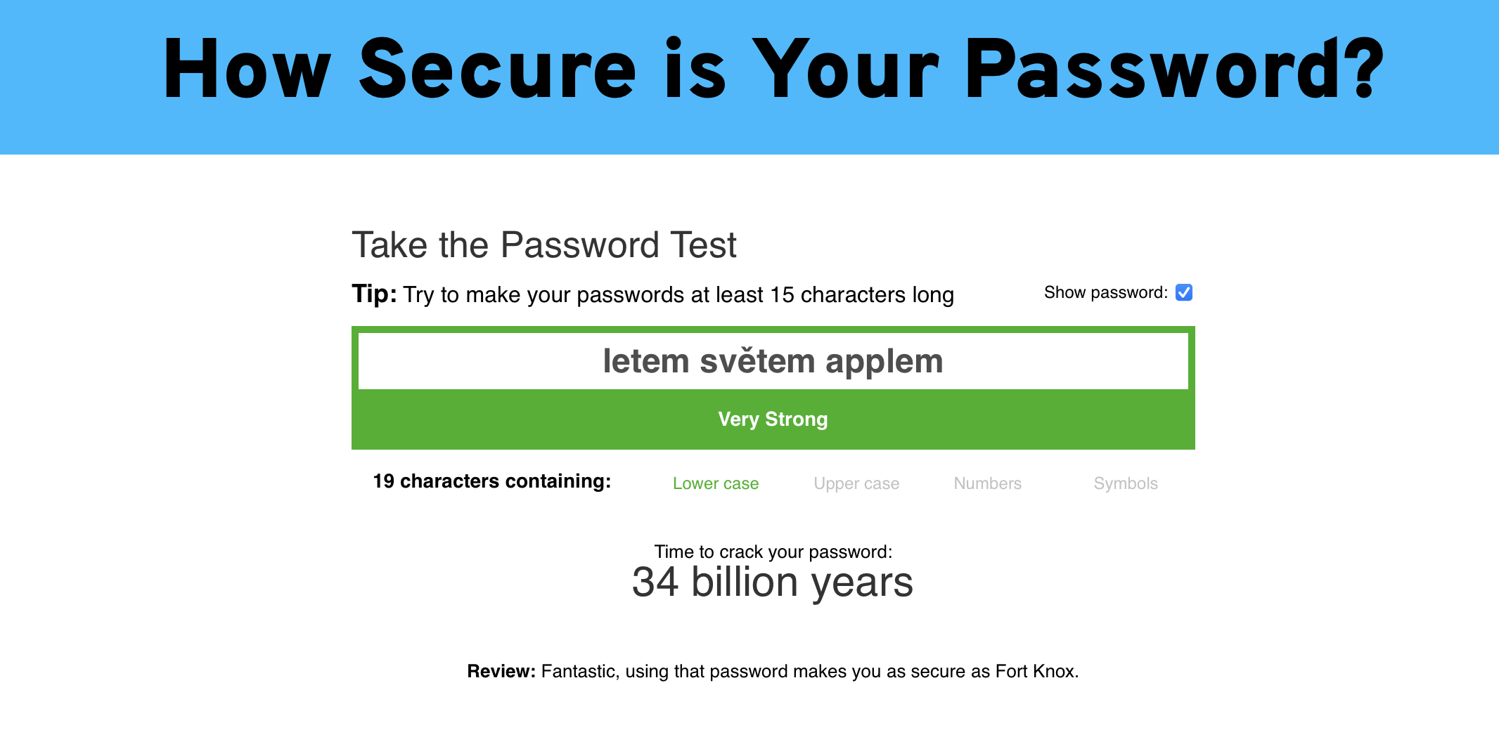 Jak silné je moje heslo můžete zjistit přímo zde.