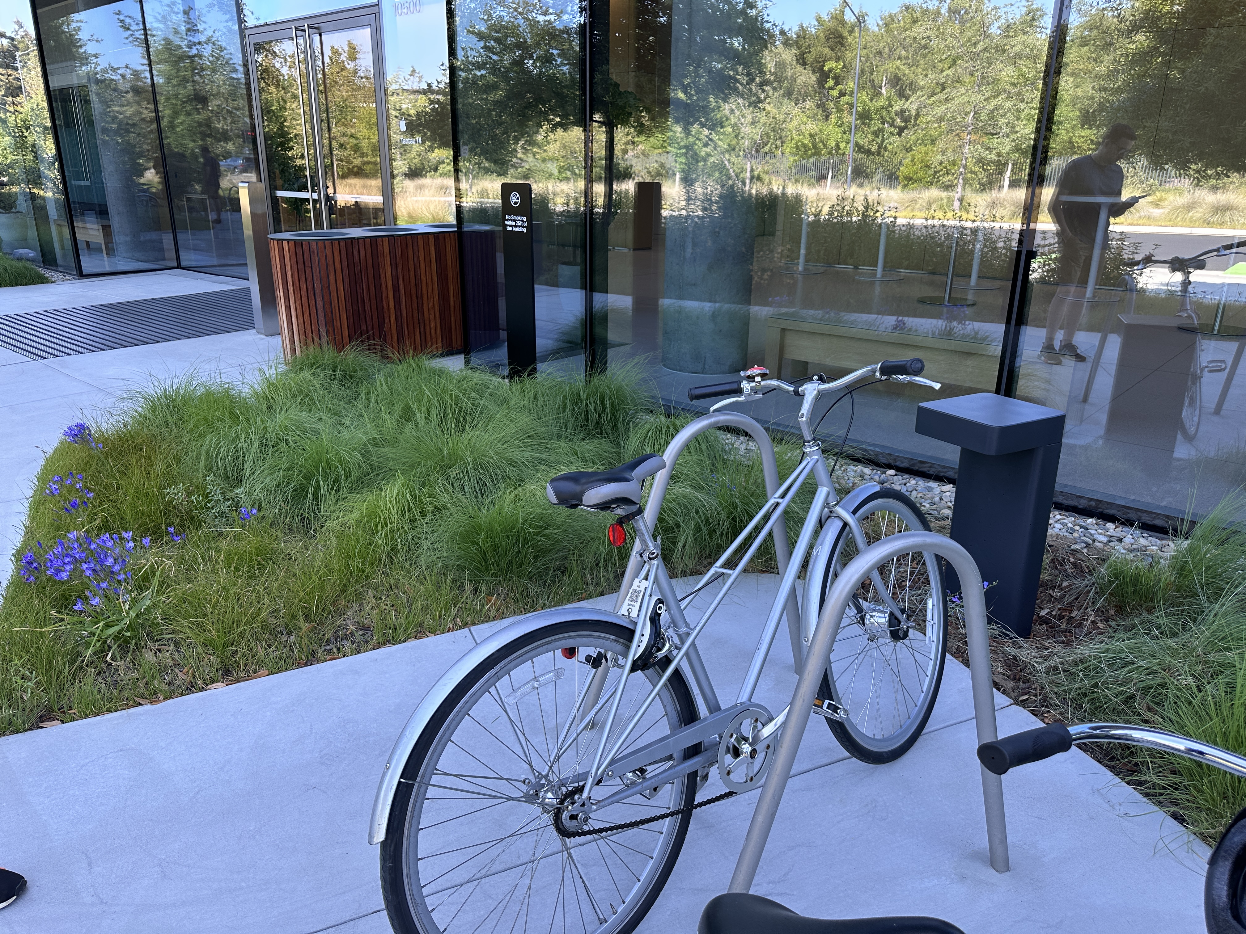 Právě kola mohou zaměstnanci využívat jak pro jízdu v kampusu, tak i mimo něj a aby to nedopadlo jako s koly, které nabízí svým zaměstnancům Google a na kterých často vidíte bezdomovce, protože nejsou zamčená, mají kola od Applu integrovaný zámek. Celkem nenápadná kola s jedním převodem, která jsou vybavena zvonkem, blatníky a odrazkami stačí pro pohyb na rovinatém terénu okolo Apple Parku a nabízí zaměstnancům možnost, jak se rychle a ekologicky přesouvat mezi jednotlivými budovami v okolí Apple Parku nebo přímo okolo samotného Apple Parku.