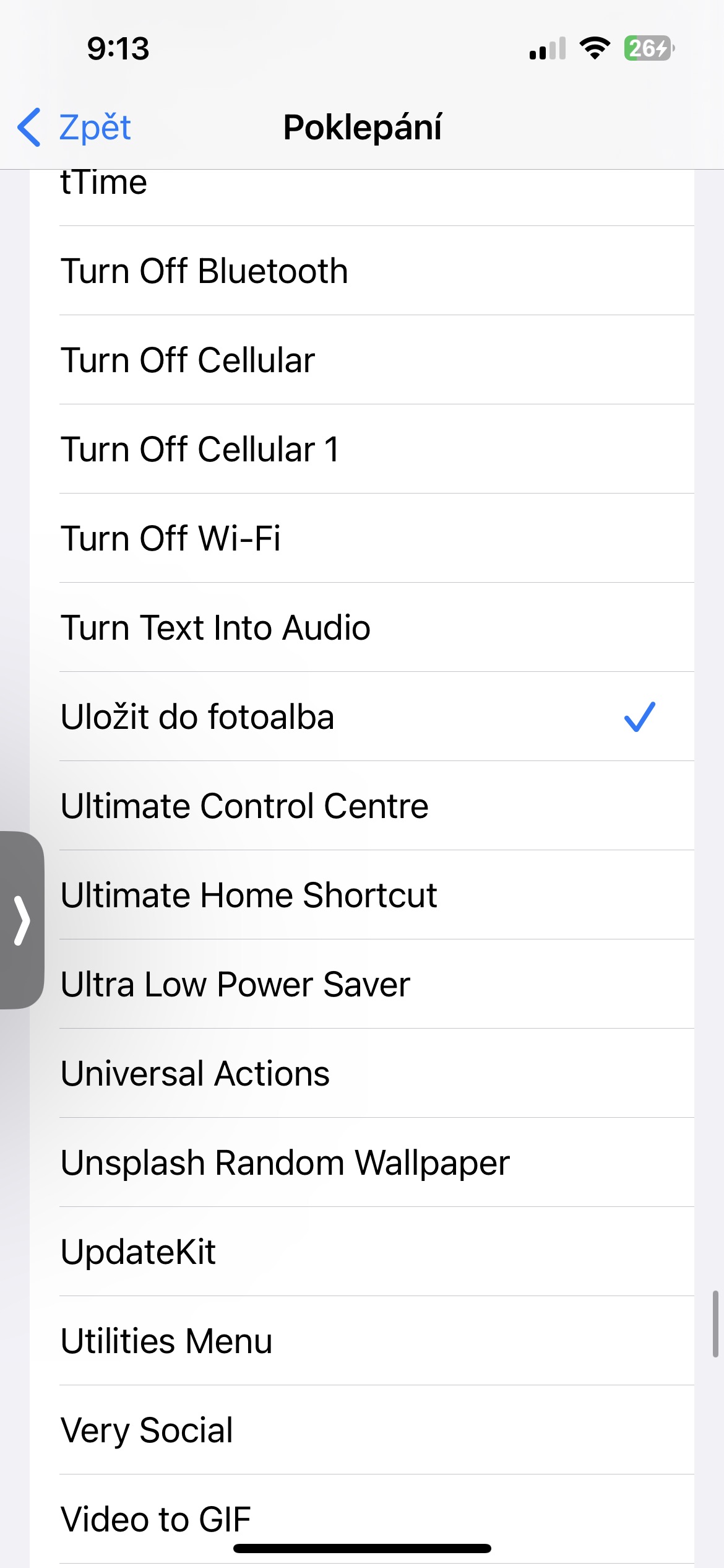 - Spusťte Nastavení -> Zpřístupnění -> Dotyk -> Klepnutí na zadní stranu a zkratku přiřaďte k vybranému druhu poklepání.