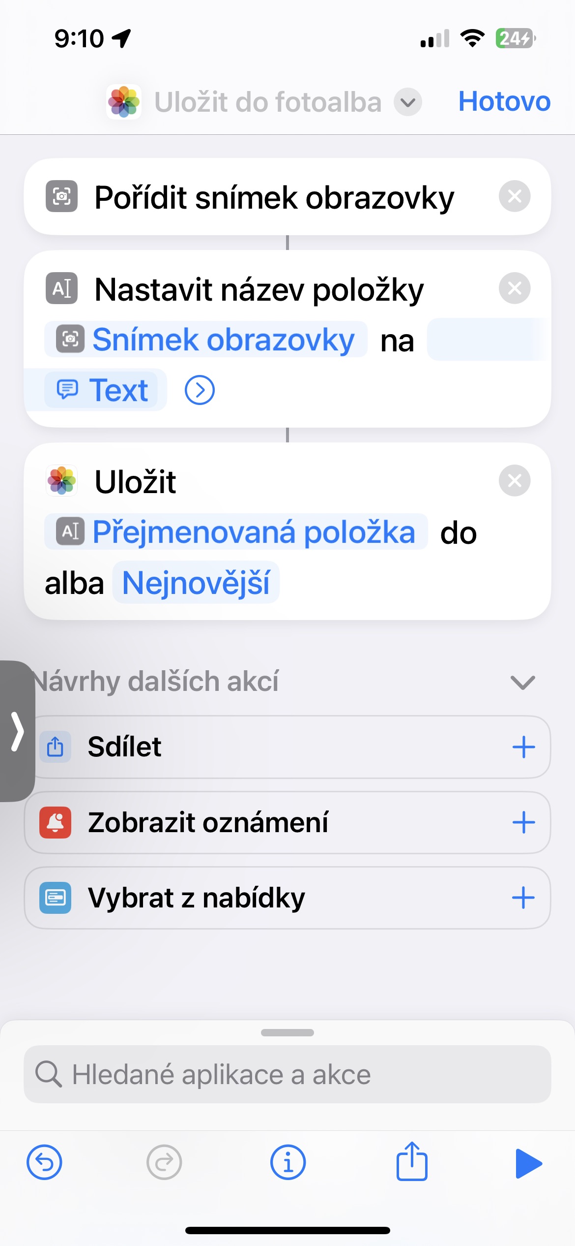 Obrázek můžete uložit přímo do aplikace Soubory, která umožňuje jeho přejmenování, ale stejně byste museli původní snímek obrazovky odstranit, abyste zachovali pořádek. To však nepomůže, pokud chcete mít přejmenované snímky obrazovky ve Fotkách. Bohužel neexistuje žádný integrovaný způsob, jak přejmenovat snímek obrazovky, který uložíte do aplikace Fotky. Souboru nemůžete dát nový název ani přímo v aplikaci Fotky. To ale neznamená, že je to ztracený případ. Pokud chcete snímky obrazovky při jejich pořizování skutečně přejmenovat, můžete využít Zkratky.