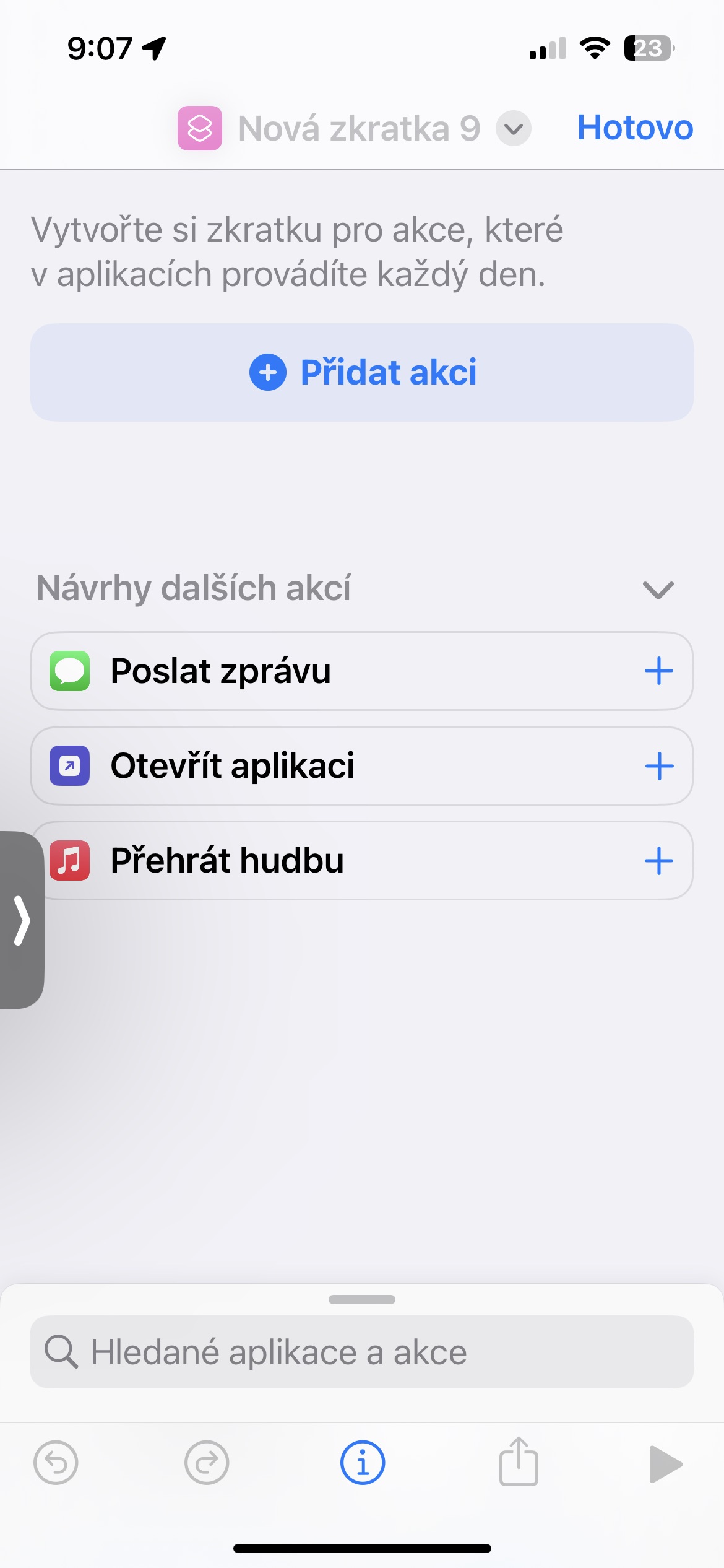 - Spusťte Zkratky a zahajte tvorbu nové zkratky.