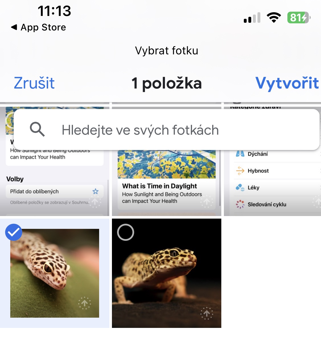 • Vyberte požadovanou fotografii a vpravo nahoře klepněte na Vytvořit.