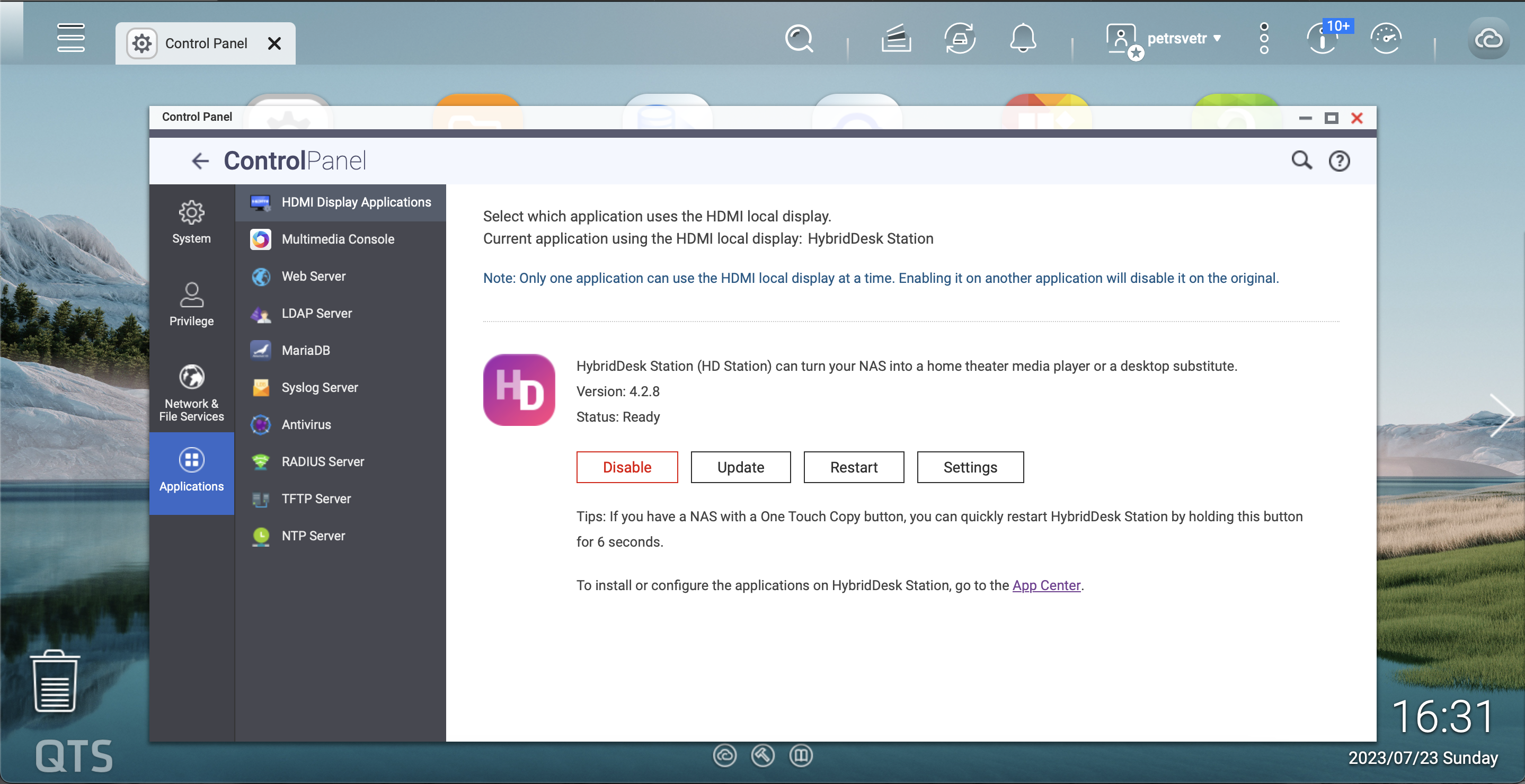 Ač by se v App Centru našlo spoustu dalších zajímavých aplikací, než abych vás jimi zahltil a dost možná vás začal u čtení tohoto textu nudit raději vypíchnu už jen poslední možnost, která mě zde vskutku zaujala. Je jí konkrétně HybridDesk Station, kterou lze velmi zjednodušeně popsat jako možnost, jak udělat z hloupé televize chytrou – a to pořádně. Tato možnost totiž zprovozní HDMI port na NASu, skrze který jej následně můžete propojit s televizí a poté už začíná legrace. Nejenže totiž můžete poté na televizi snadno přehrávat filmy, hudbu, fotky či obecně takřka cokoliv, co je na NASu uložené (a co dokáže televize přečíst), ale – a co je za mě možná ještě zajímavější -, lze takto na TV dostat aplikace typu Spotify, YouTube a tak podobně. HybridDesk Station je totiž jakýmsi hybridním operačním systémem, který kombinuje prvky prohlížeče úložiště s prvky počítače, což dělá z celého řešení poměrně unikátní záležitost s velkými možnostmi. Aplikace jako takové pak doinstalováváte přímo do tohoto prostředí, díky čemuž k nim v něm můžete snadno a rychle přistupovat. Negativem je sice to, že jich není až tak moc, nicméně vybrat se rozhodně dá – tím spíš, když jsou k dostání zejména aplikace velkých firem, které jsou beztak pro uživatele dlouhodobě nejlákavější.