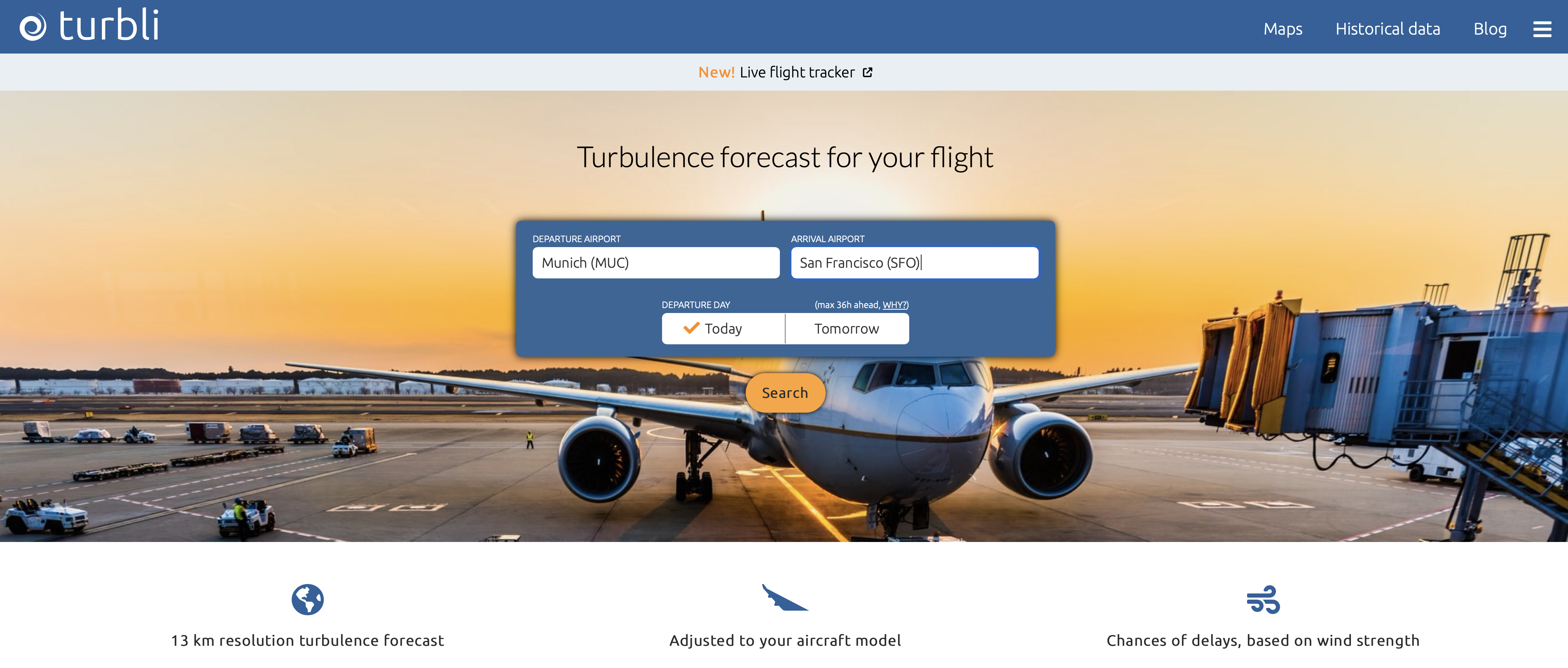 Pokud chcete procestovat celý svět, bez letadla to zkrátka nejde a i když se mnoho lidí létání bojí, touha po cestování je pro ně silnější než strach. To, že jim budete říkat, že je mnohem větší šance, že se stane nehoda po cestě z domu na letiště, než při samotném letu, je sice pěkné, ale lidi kteří mají skutečný strach z létání to příliš neuklidní. Co by vás nebo vaše blízké však uklidnit mohlo, je stránka, díky které okamžitě zjistíte, zda při vašem letu hrozí turbulence. Na stránku stačí zadat informace o tom odkud, kam a kdy letíte nebo přímo číslo letu a a okamžitě zjistíte, kdy a jaké turbulence hrozí.